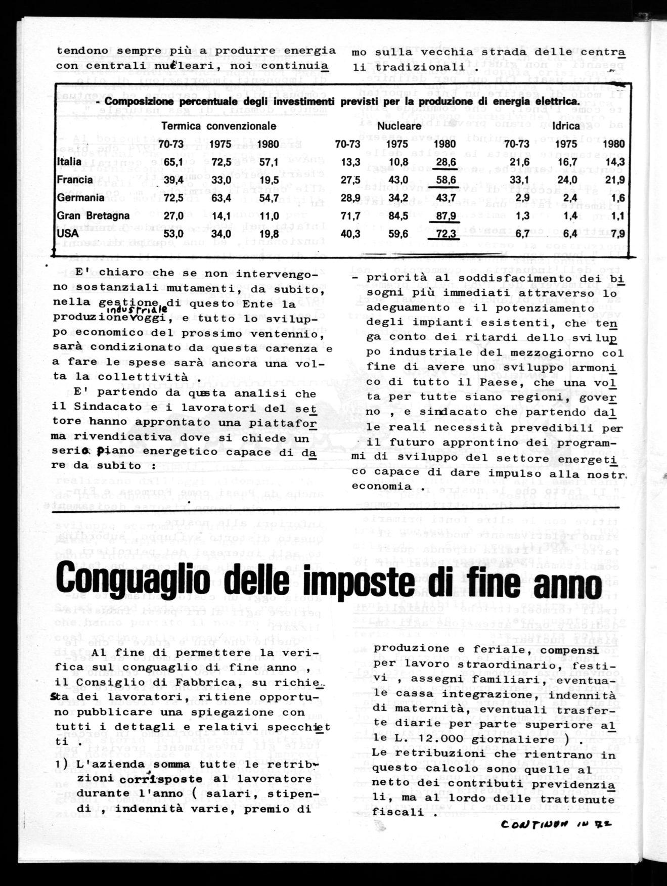 I motivi che hanno indotto il Consiglio di Fabbrica ad interessarsi della produzione di energiaelettrica nel nostro Paese sono