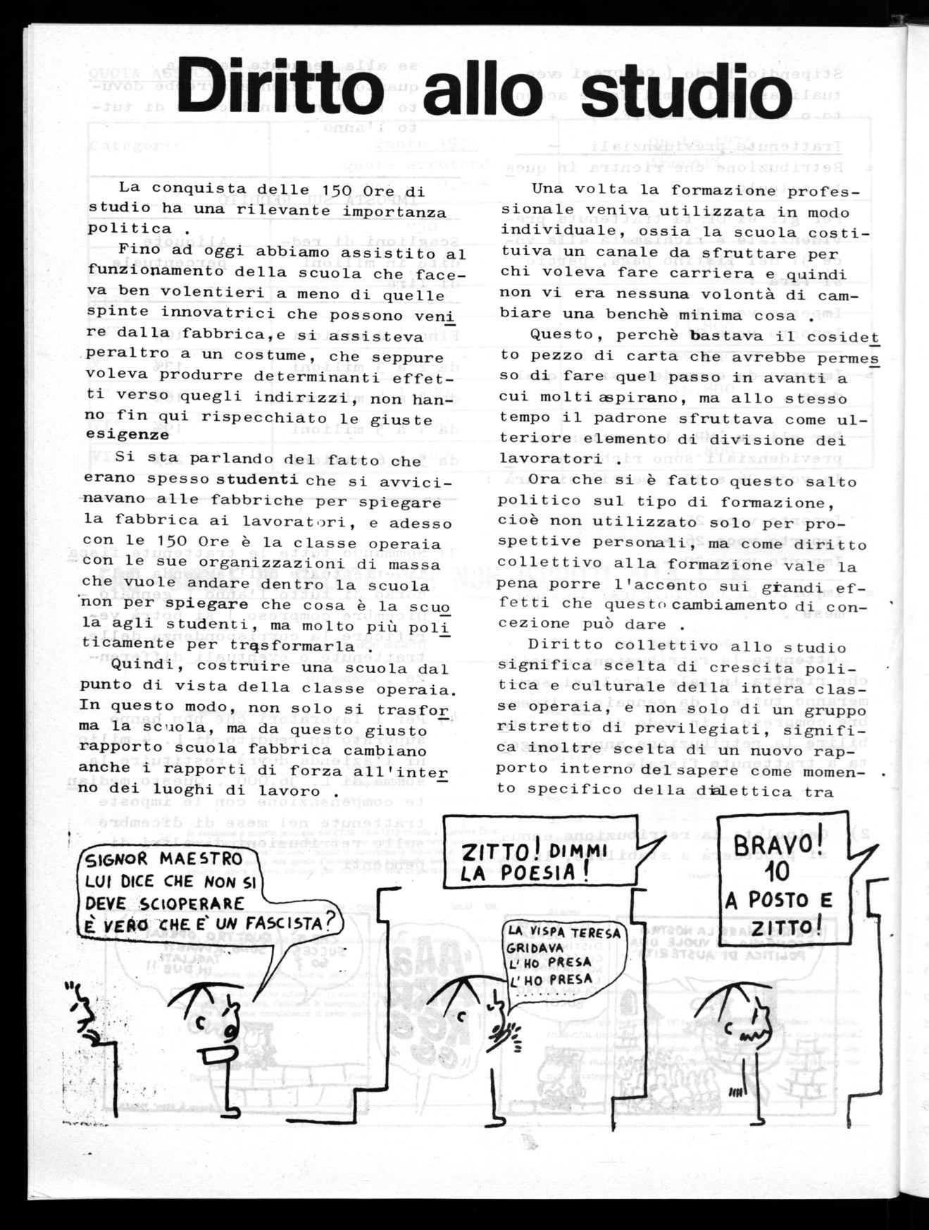 Diritto collettivo allo studio significa scelta di crescita politica e culturale della intera classe operaia, e non solo di un gruppo ristretto di previlegiati, significa inoltre scelta di un nuovo rapporto interno delsapere come momen- • to specifico della dialettica tra