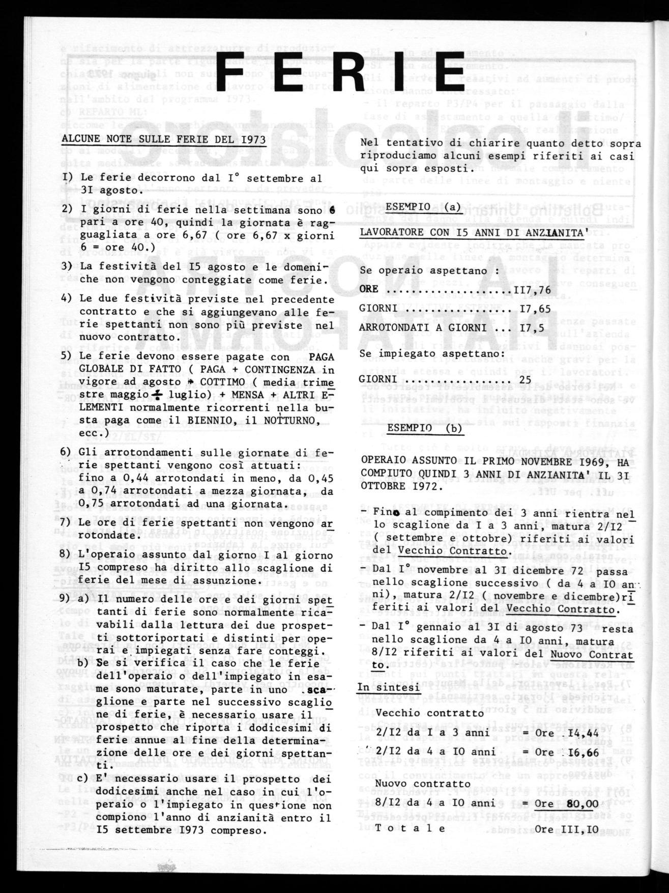 ALCUNE NOTE SULLE FERIE DEL 1973