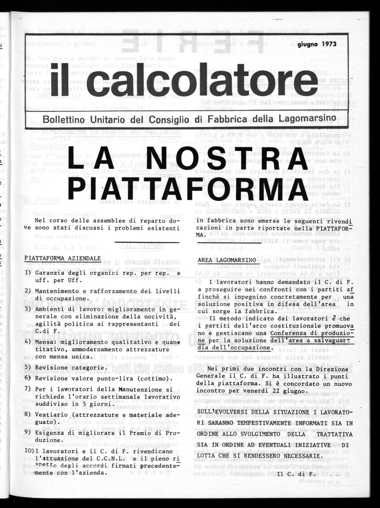 in fabbrica sono emerse le seguenti rivendi cazioni ín parte riportate nella PIATTAFORMA.