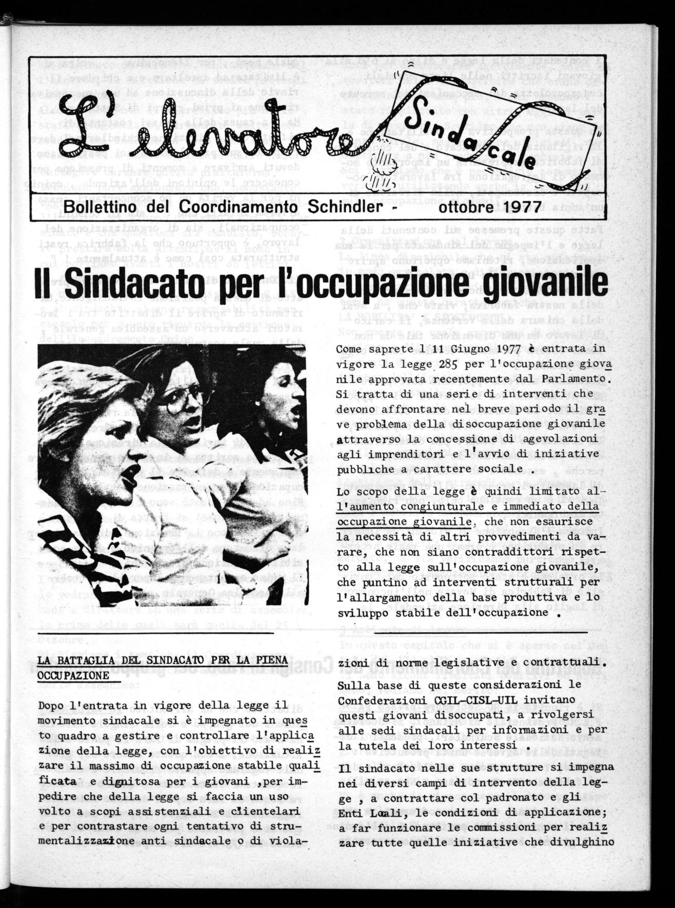 Come saprete l 11 Giugno 1977 è entrata in vigore la legge 285 per l'occupazione giova nile approvata recentemente dal Parlamento. Si tratta di una serie di interventi che devono affrontare nel breve periodo il gra ve problema della disoccupazione giovanile attraverso la concessione di agevolazioni agli imprenditori e l'avvio di iniziative pubbliche a carattere sociale