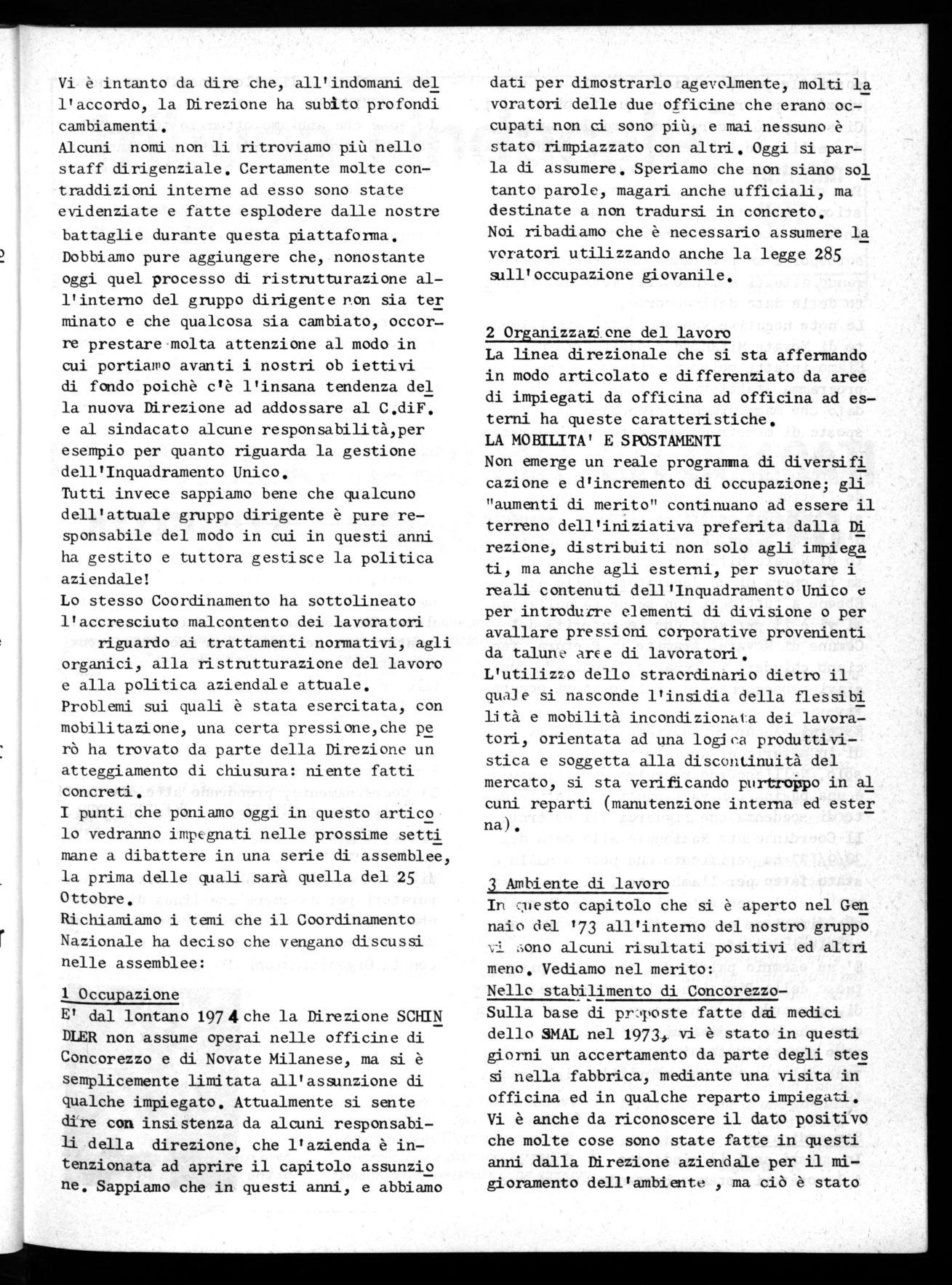 E' dal lontano 197 4 che la Direzione SCI-IN DLER non assume operai nelle officine di Concorezzo e di Novate Milanese, ma si è semplicemente limitata all'assunzione di qualche impiegato. Attualmente si sente dire con insistenza da alcuni responsabili della direzione, che l'azienda è intenzionata ad aprire il capitolo assunzio ne. Sappiamo che in questi anni, e abbiamo