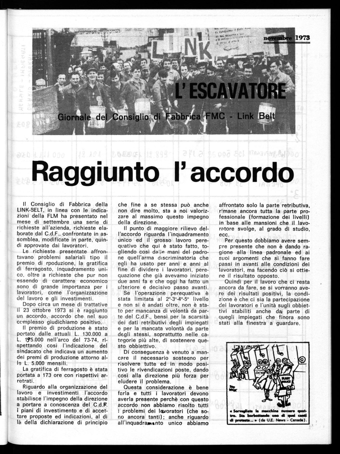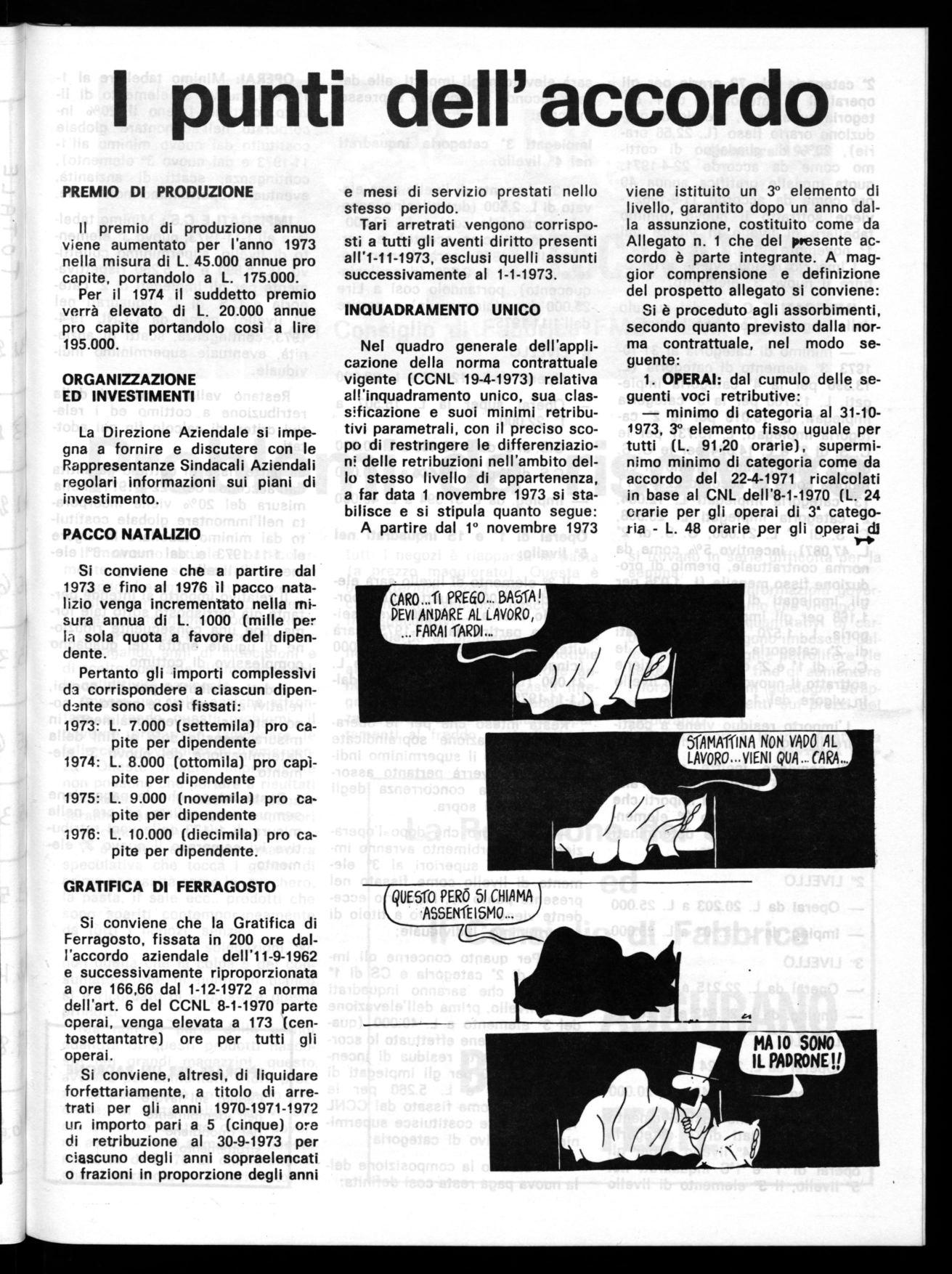 Dopo circa un mese di trattative il 23 ottobre 1973 si è raggiunto un accordo, accordo che nel suo complesso giudichiamo positivo.