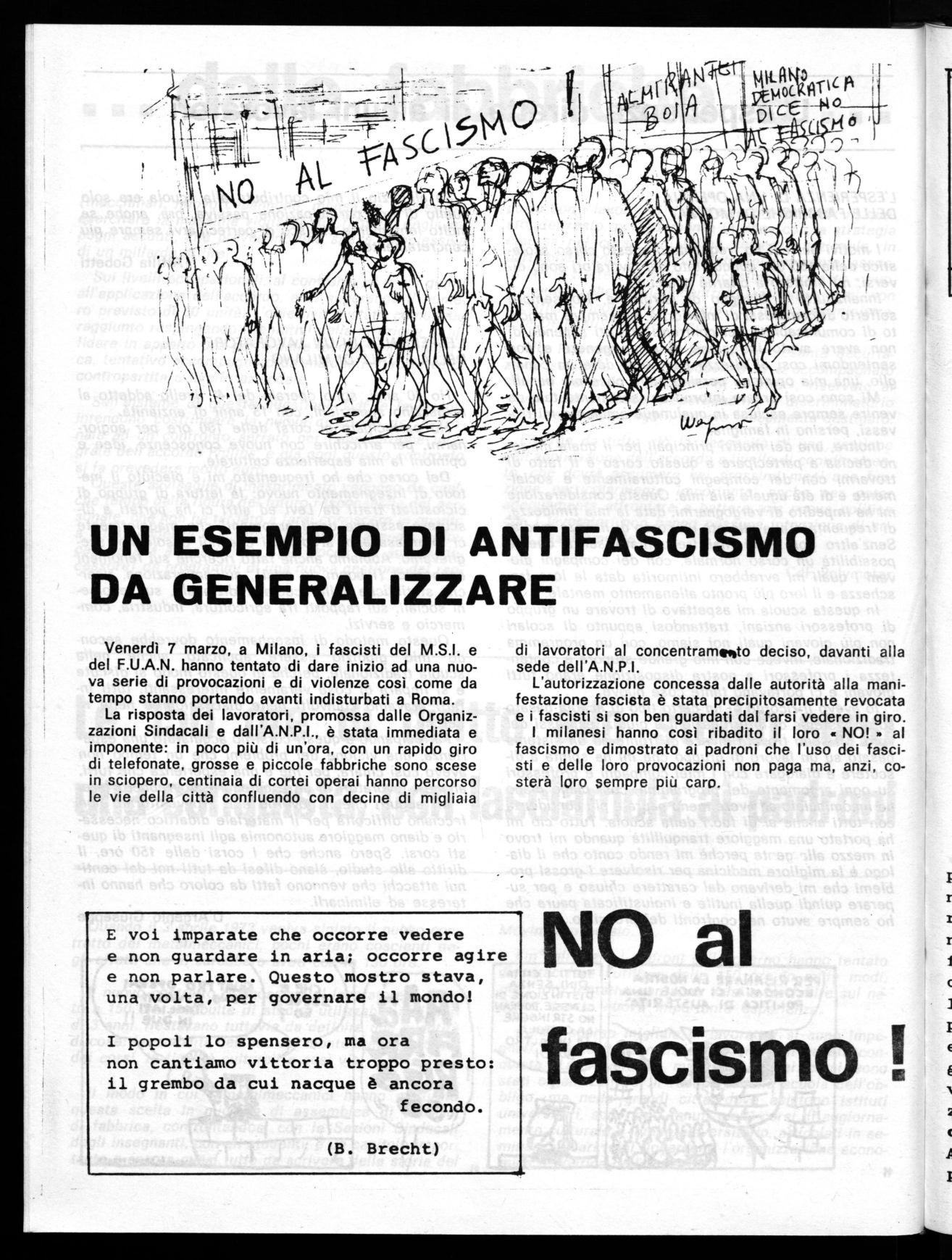 Venerdì 7 marzo, a Milano, i fascisti del M.S.I. e del F.U.A.N. hanno tentato di dare inizio ad una nuova serie di provocazioni e di violenze così come da tempo stanno portando avanti indisturbati a Roma.