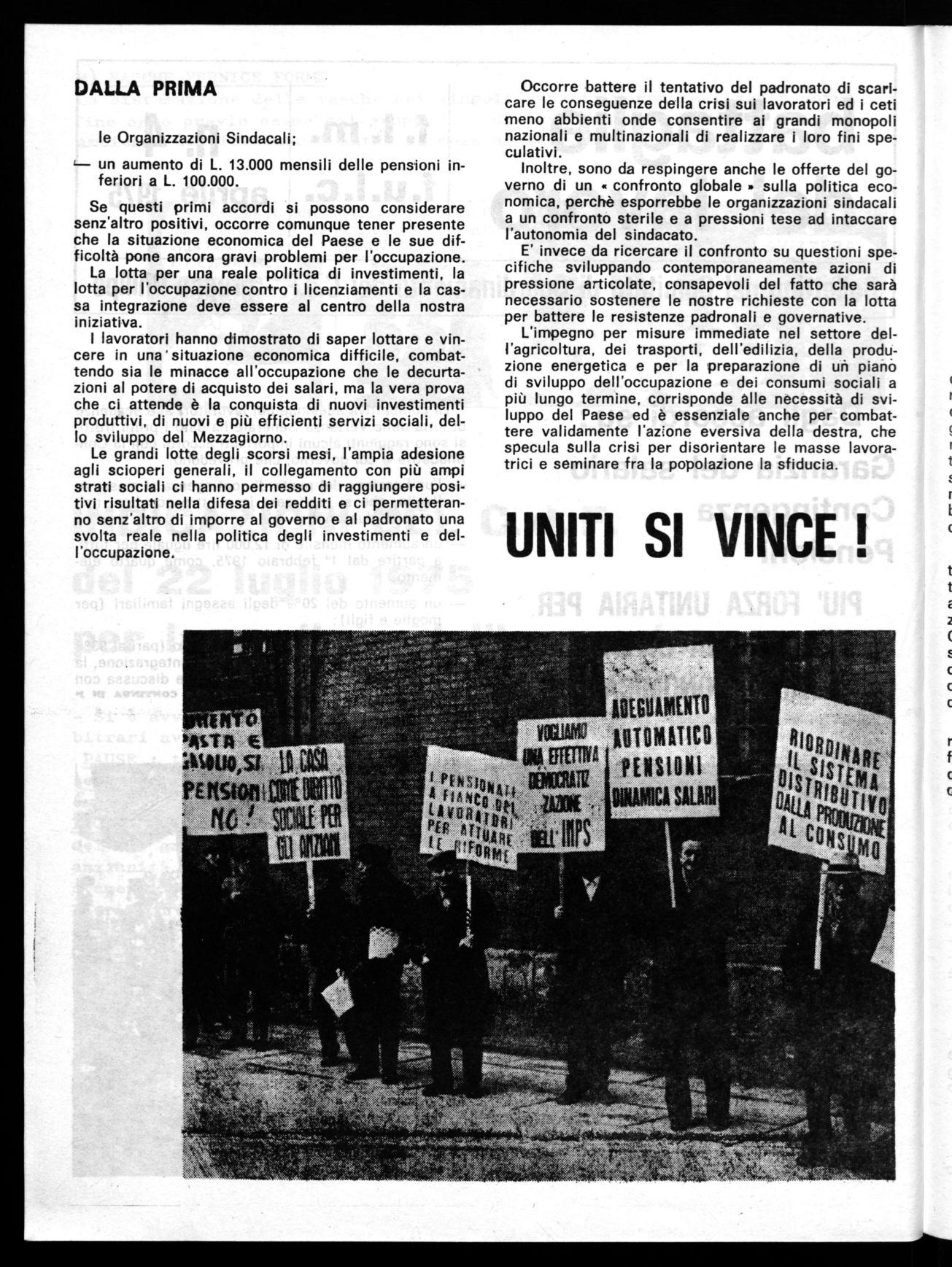 Le grandi lotte degli scorsi mesi, l'ampia adesione agli scioperi generali, il collegamento con più ampi strati sociali ci hanno permesso di raggiungere positivi risultati nella difesa dei redditi e ci permetteranno senz'altro di imporre al governo e al padronato una svolta reale nella politica degli investimenti e dell'occupazione.