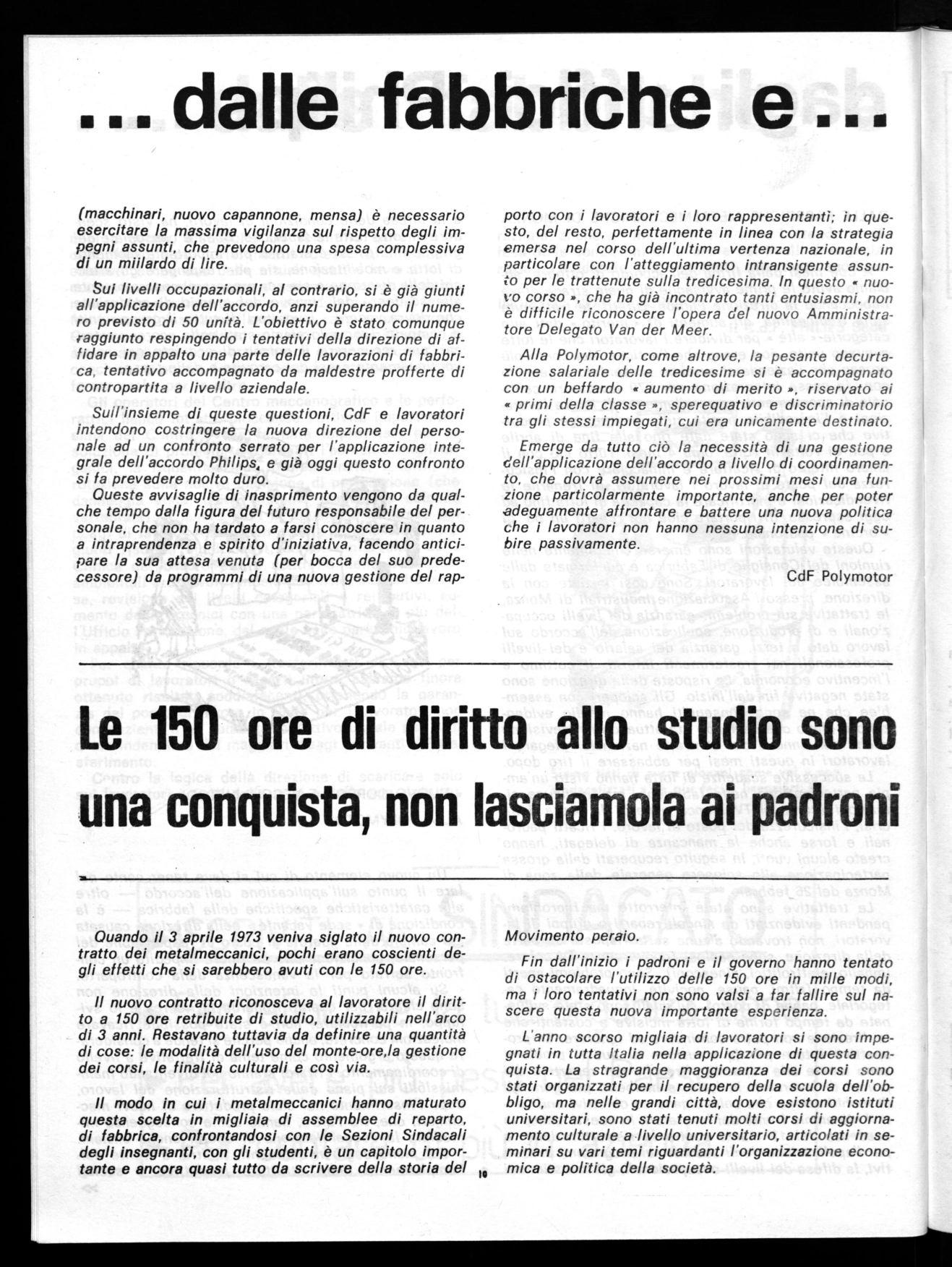 Fin dall'inizio i padroni e il governo hanno tentato di ostacolare l'utilizzo delle 150 ore ín mille modi, ma i loro tentativi non sono valsi a far fallire sul nascere questa nuova importante esperienza.