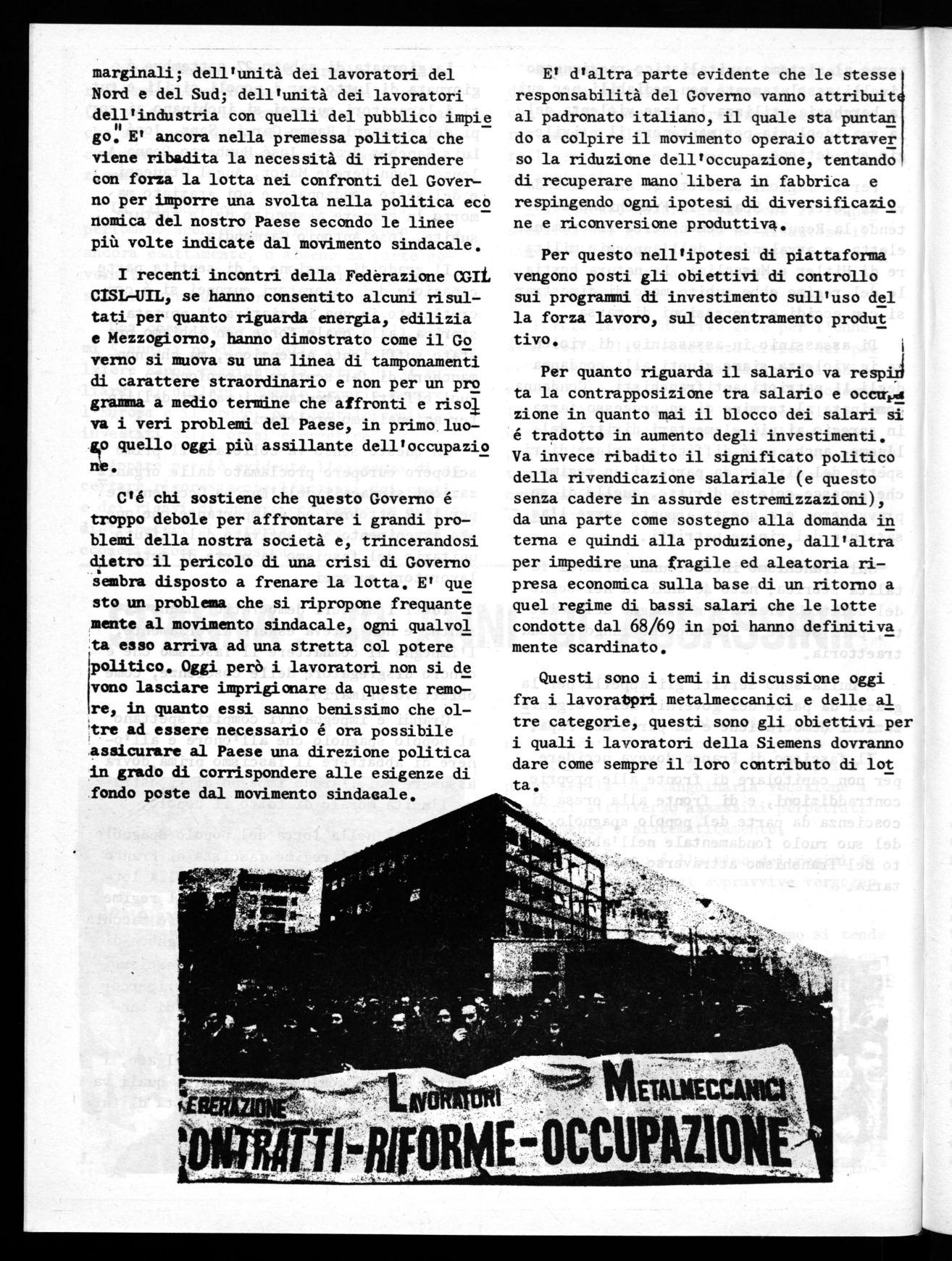 Ed é in questa premessa politica che vie ne posta l'esigenza ei della unificazione del movimento sui punti centrali della lotta per la difesa intransigente dell'occupazione e per la sua espansione e quindi dell'uni tà dei lavoratori occupati, disoccupati, continua in ultima