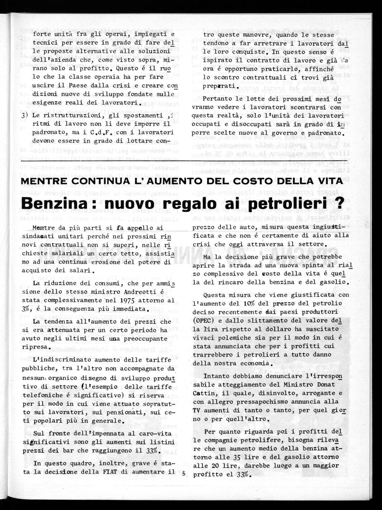 3) Le ristrutturazioni, gli spostamenti ritmi di lavoro non li deve imporre il padronato, ma i C.d.F. con i lavoratori devono essere in grado di lottare con-