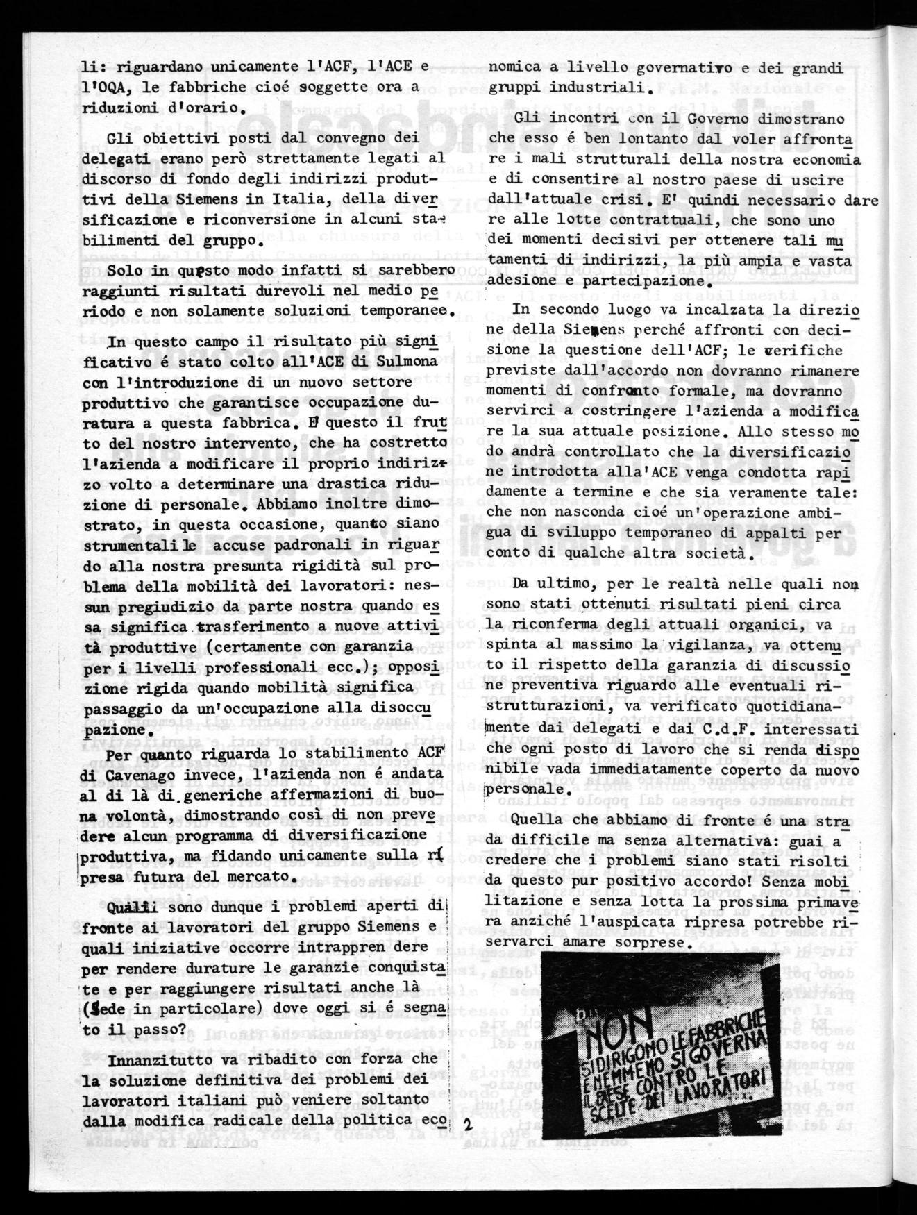 Gli obiettivi posti dal convegno dei delegati erano però strettamente legati al discorso di fondo degli indirizzi produttivi della Siemens in Italia, della diver sificazione e riconversione in alcuni sta-2 bilimenti del gruppo.