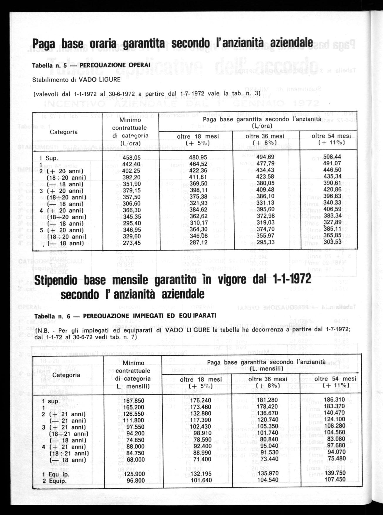 (N.B. - Per gli impiegati ed equiparati di VADO LI GURE la tabella ha decorrenza a partire dal 1-7-1972; dal 1-1-72 al 30-6-72 vedi tab. n. 7)