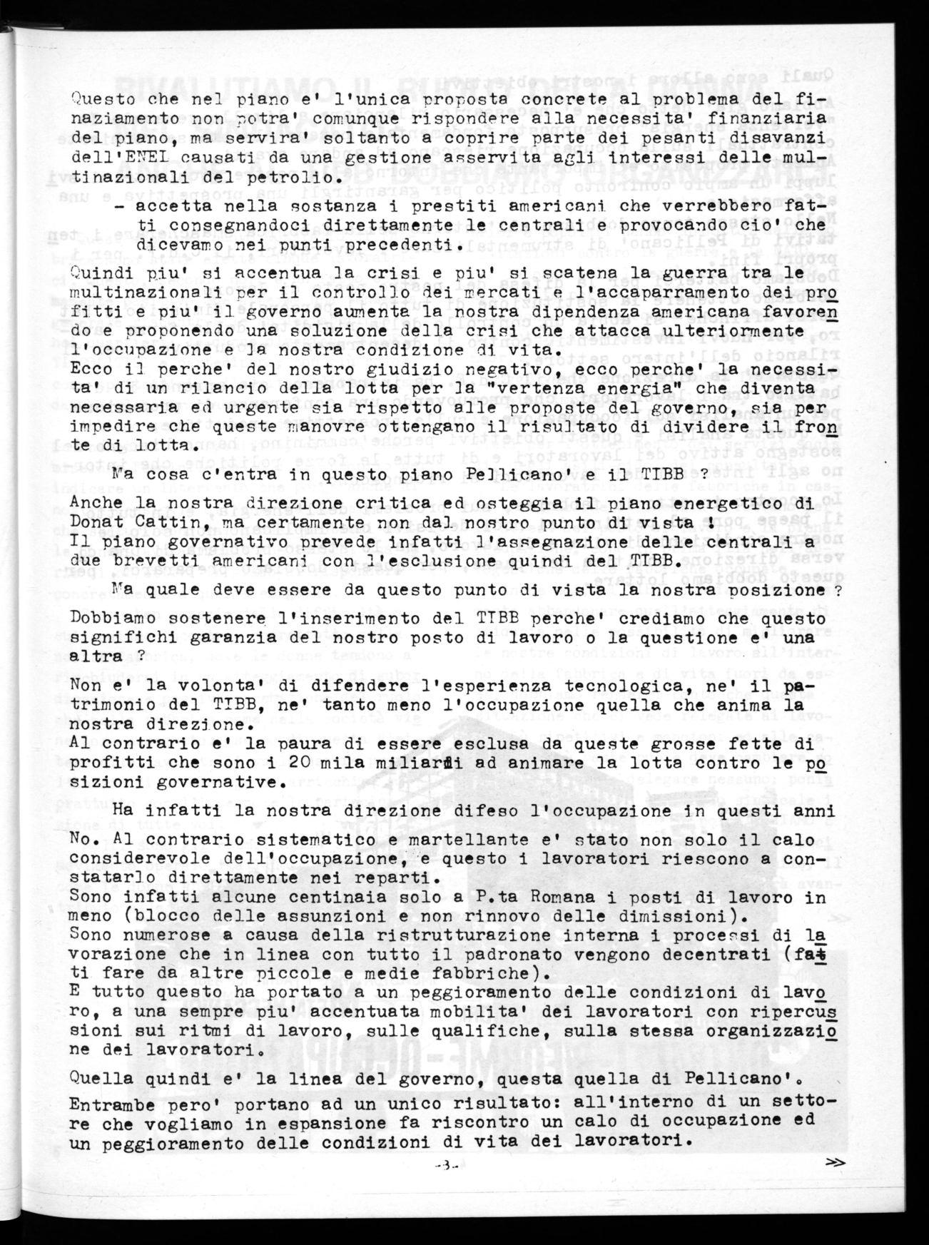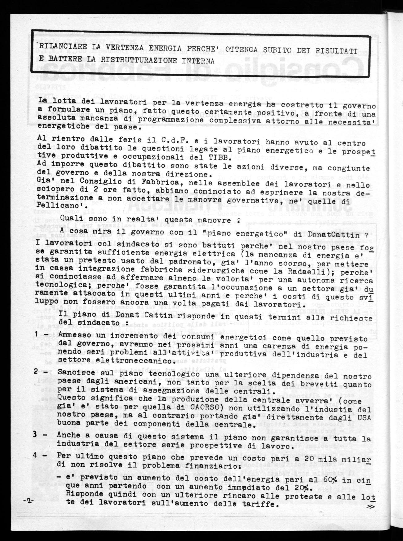 Lo scontro in atto in fabbrica, sui problemi dell'energia, e in tutto il paese pone al pettine dei nodi decisivi che implicano non solo le nostre condizioni di vita e di lavoro, ma lo stesso problema di una di versa direzione politica del paese, per questo dobbiamo prepararci, per questo dobbiamo lottare.