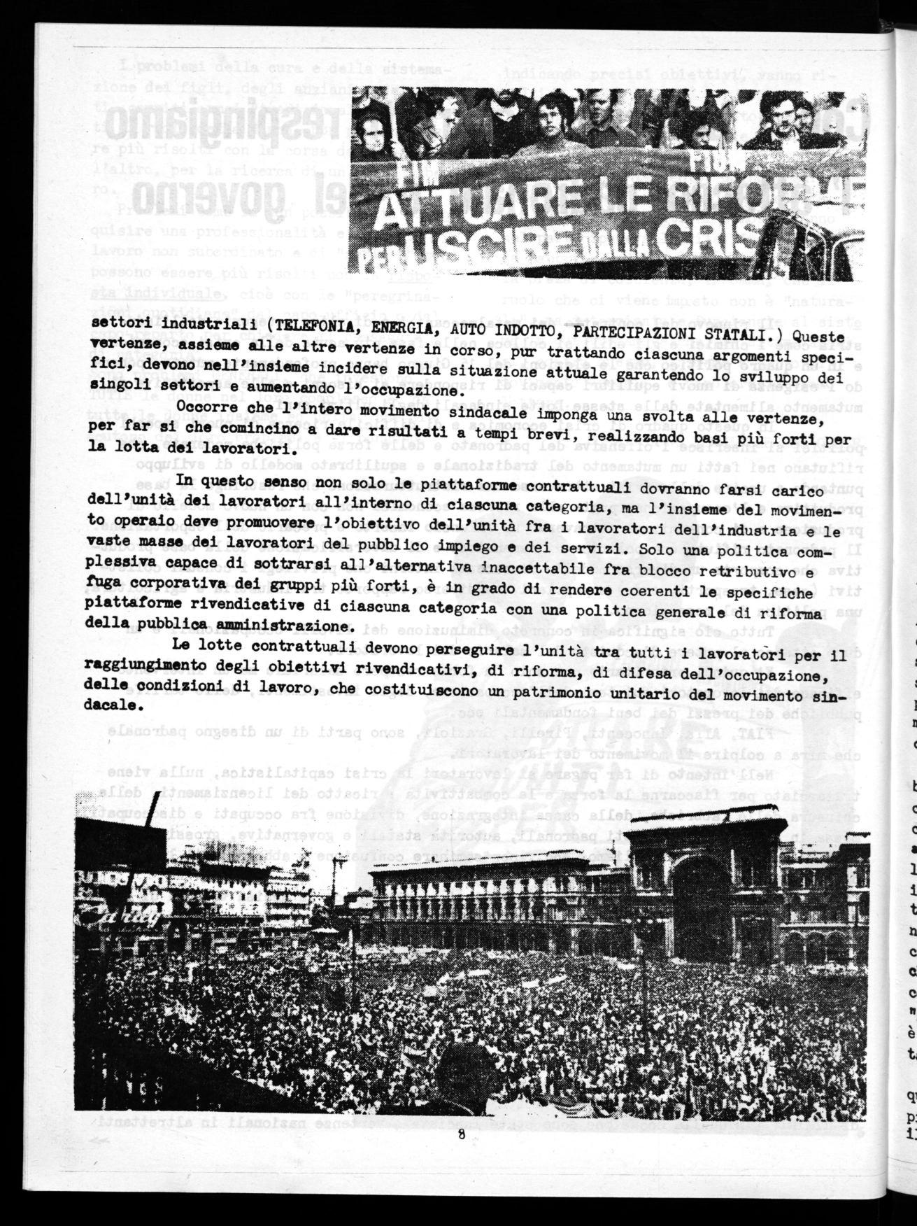 Già da adesso le manovre padronali si scontrano con la decisa volontà di lotta dei lavoratori, che si esprime con rifiuto della cassa integrazione, sciopero alla rovescia, organizzazione dei disoccupati, rifiuto degli aumenti tariffari, ecc.