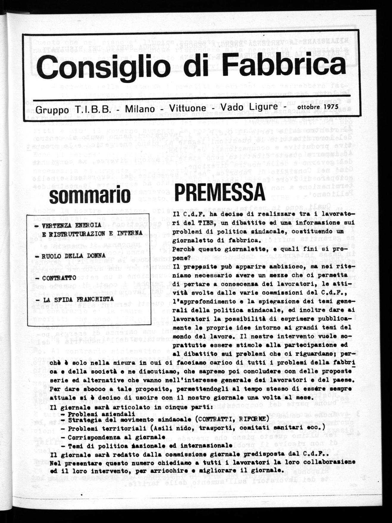 Quest'anno nel nuovo Consiglio di Fabbrica sono state elette cinque lavoratrici. Questo, secondo noi, è un fatto estre mamente positivo che afferma una tendenza generale riscontrabile nelle fabbriche e nei quartieri: le donne diventano SOGGETTI POLITICI e partecipano, non più solo come spettatrici, alla vita politica e sin dacale del nostro paese.