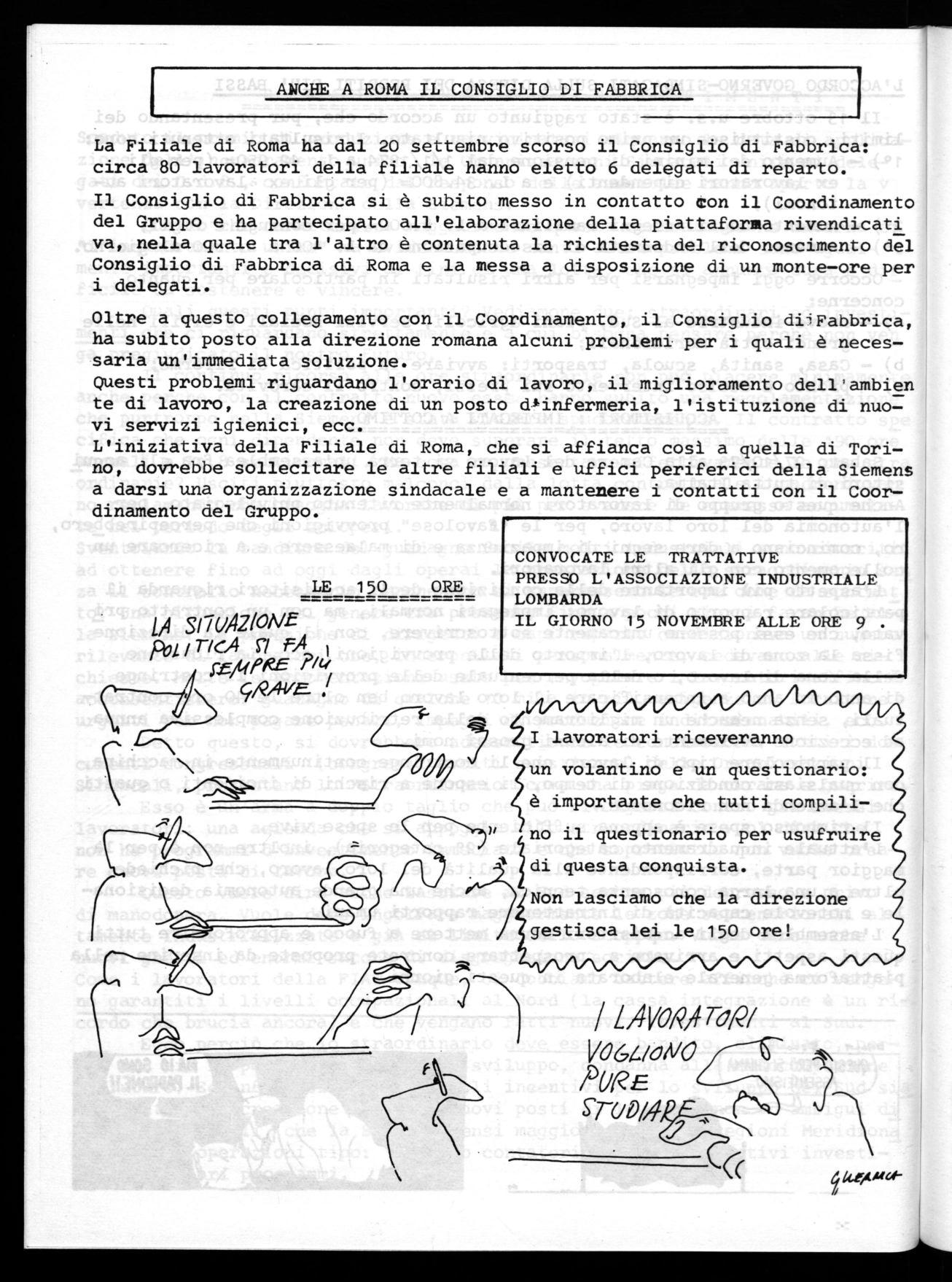Il Consiglio di Fabbrica si è subito messo in contatto con il Coordinamento del Gruppo e ha partecipato all'elaborazione della piattaforma rivendicati va, nella quale tra l'altro è contenuta la richiesta del riconoscimento del Consiglio di Fabbrica di Roma e la messa a disposizione di un monte-ore per i delegati.