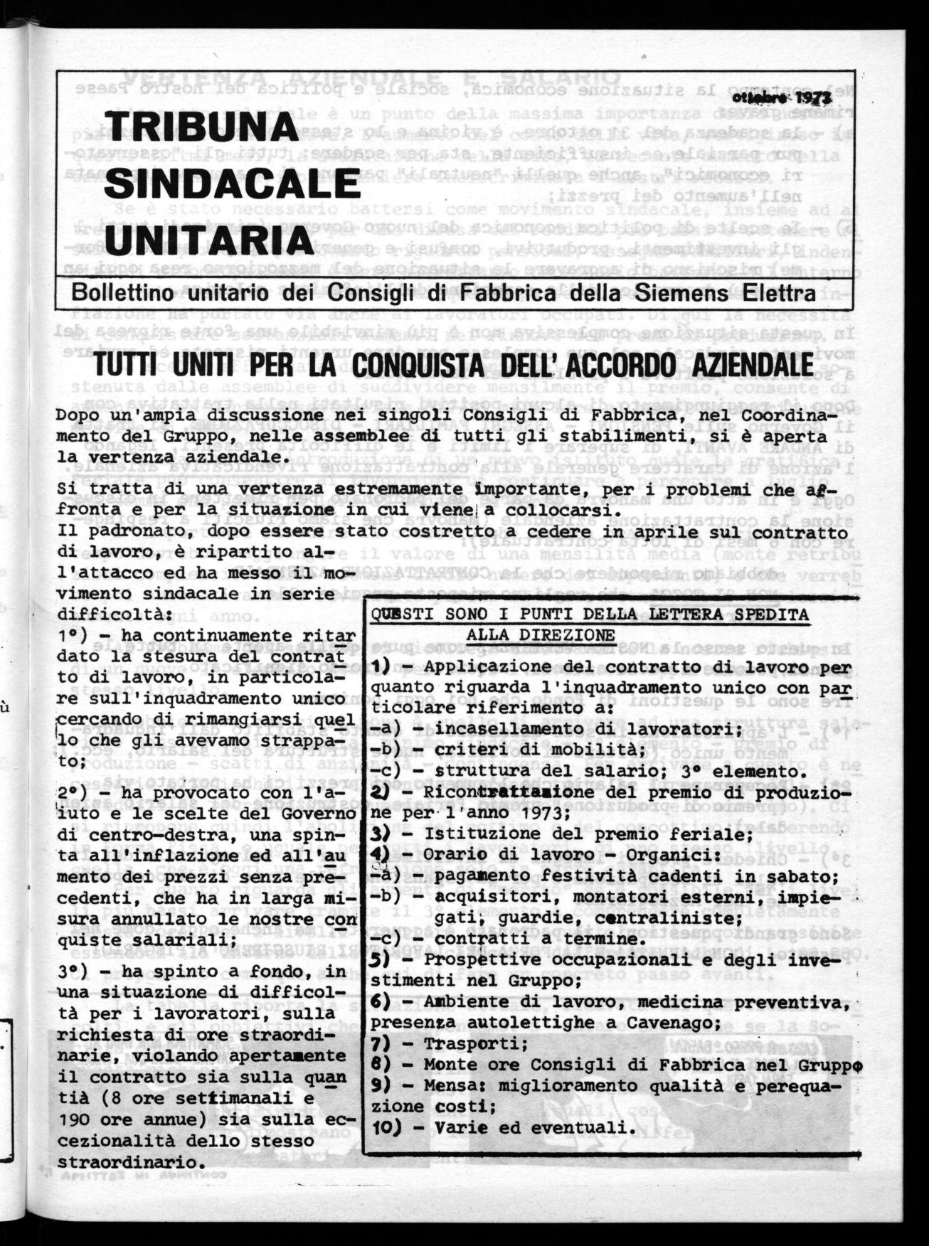 Bollettino unitario dei Consigli di Fabbrica della Siemens Elettra