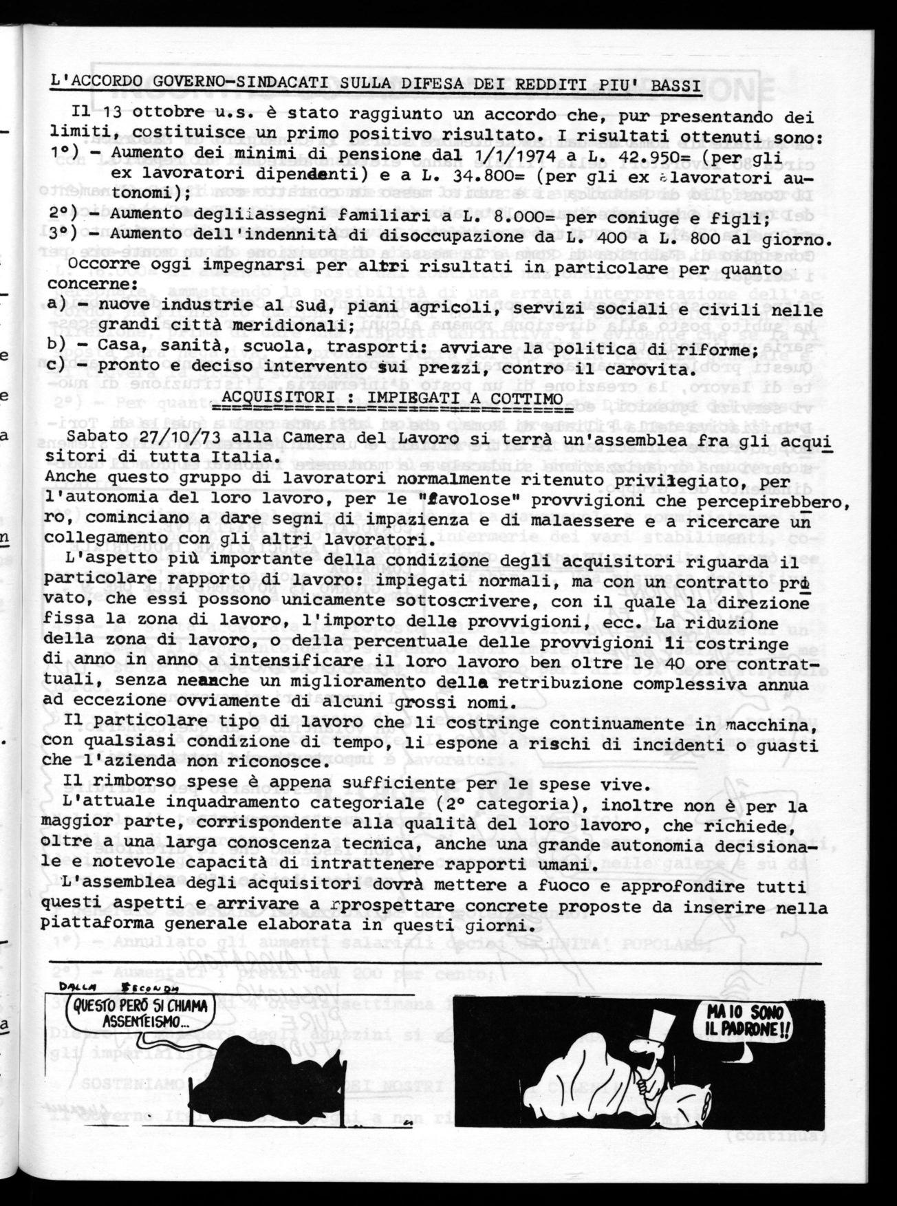 a Sabato 27/10/73 alla Camera del Lavoro si terrà un'assemblea fra gli acqui sitori di tutta Italia.