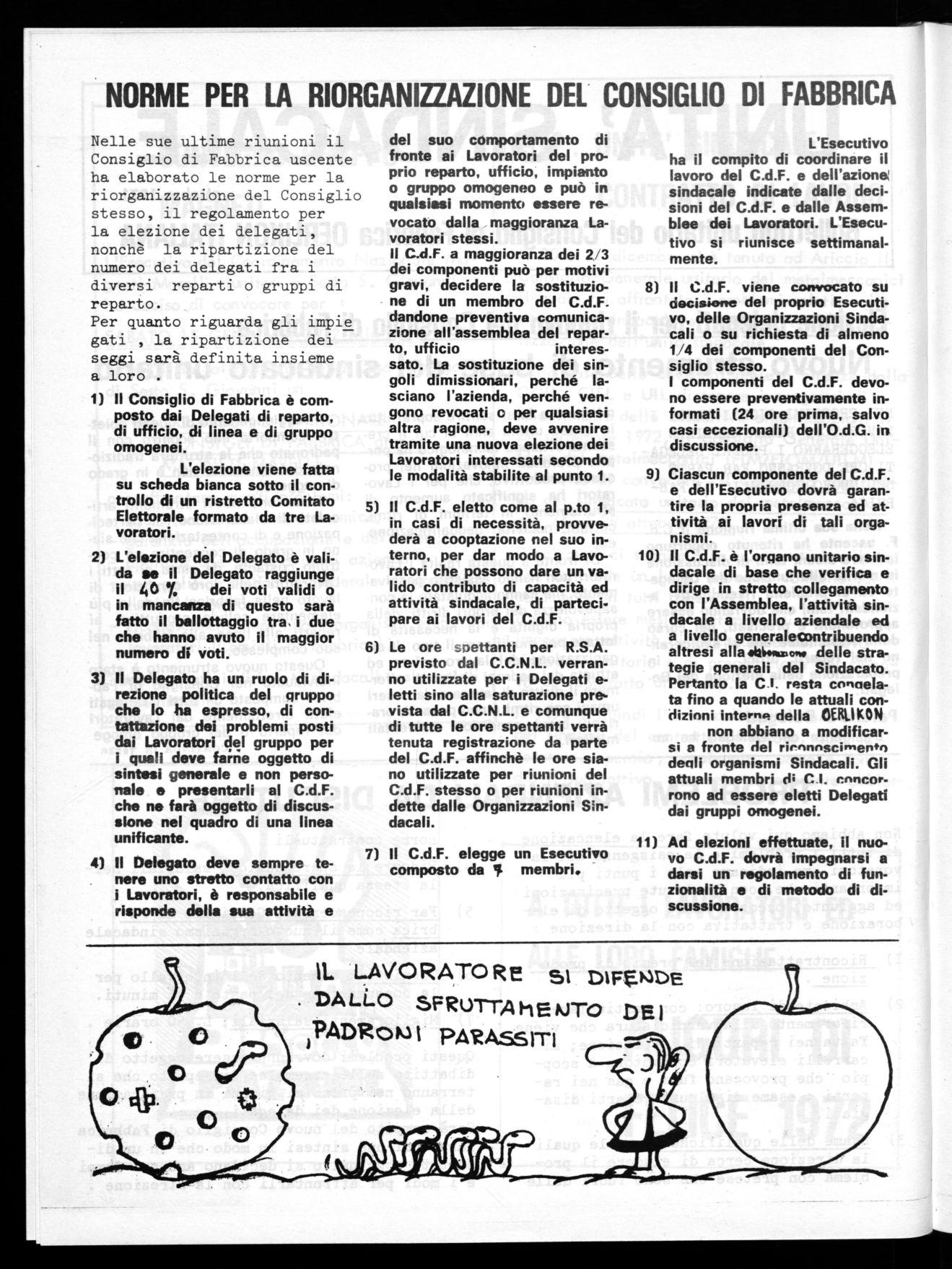 Bollettino unitario del Consiglio di Fabbrica OERLIKON ITALIANA
