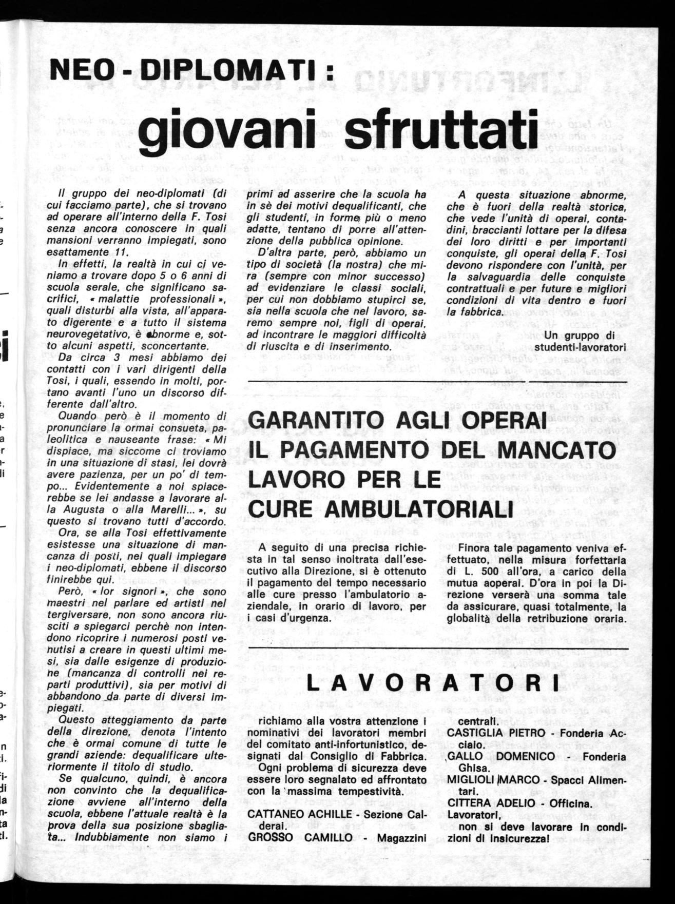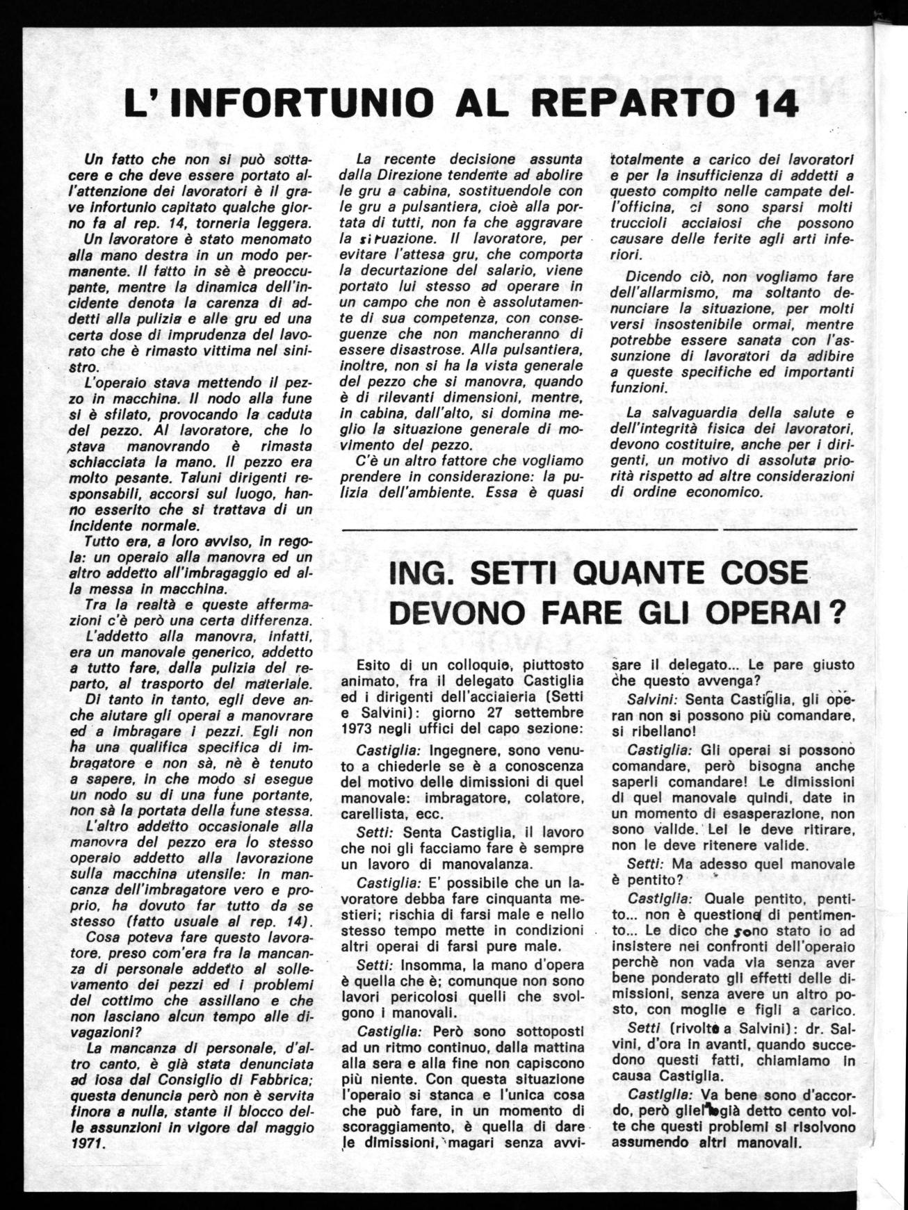 Certamente intorno a questo c'e ancora molto da fare, molti obbiettivi debbono essere ancora realizzati; in particolar modo occorre un grande impegno per far maturare tutti i delegati e tutti i lavoratori e concruistarli alla giustezza di questa linea e di questi obbiettivi.