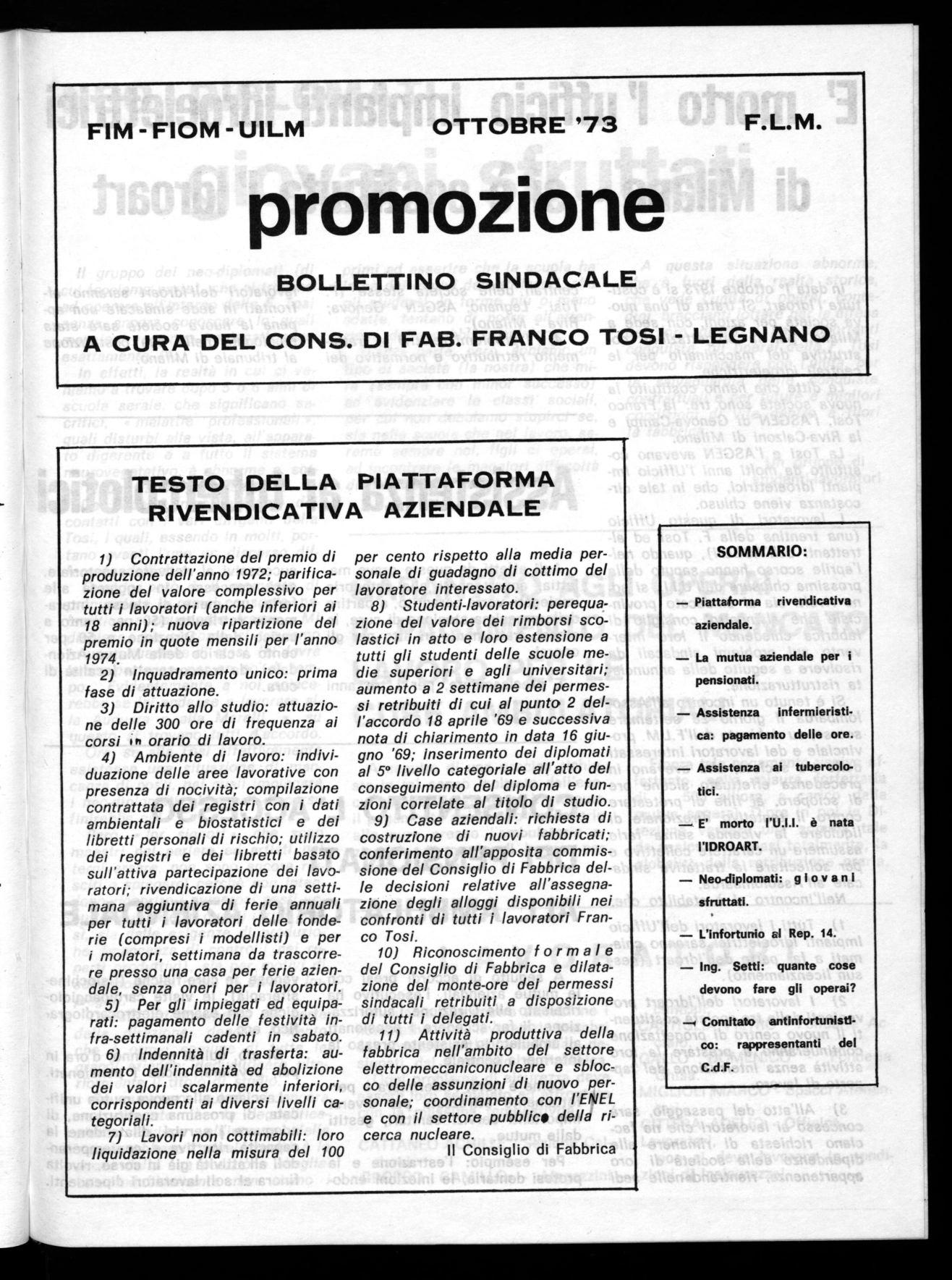 FIM - FIOM - UILM OTTOBRE '73 F.L.M.