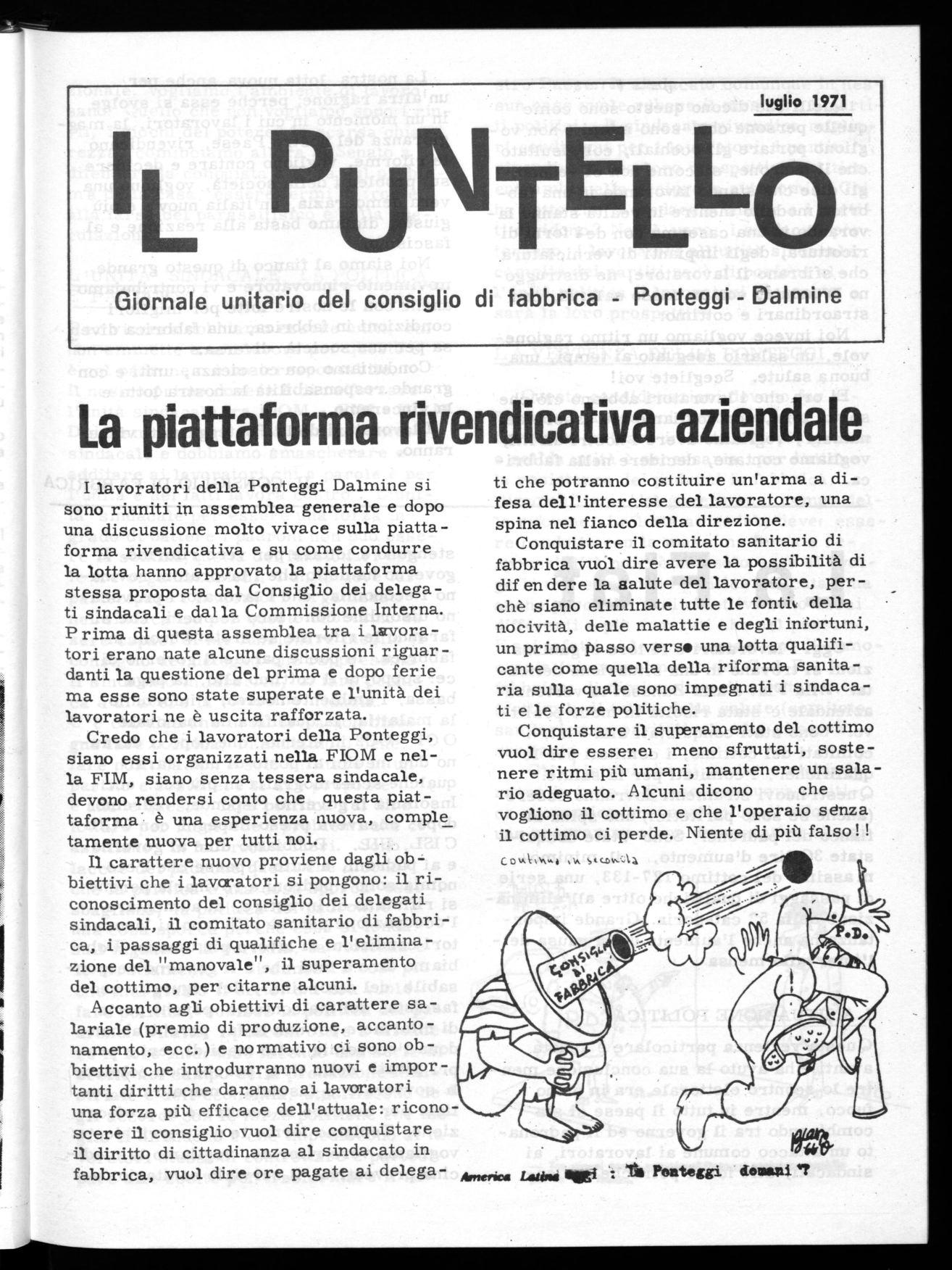 Nella Ponteggi Dalmine, stabilimento a partecipazione statale, dove una parte delle azioni sono in mano allo stato ed una parte ai privati, le condizioni dei lavoratori, la democrazia in fabbrica vengono lasciate nel dimenticatoio Una lunga serie di ingiustizie, uno sfruttamen to sempre più intenso, il mancato rispet to degli accordi contrattuali e dei diritti dei lavoratori sono all'ordine del giorno.