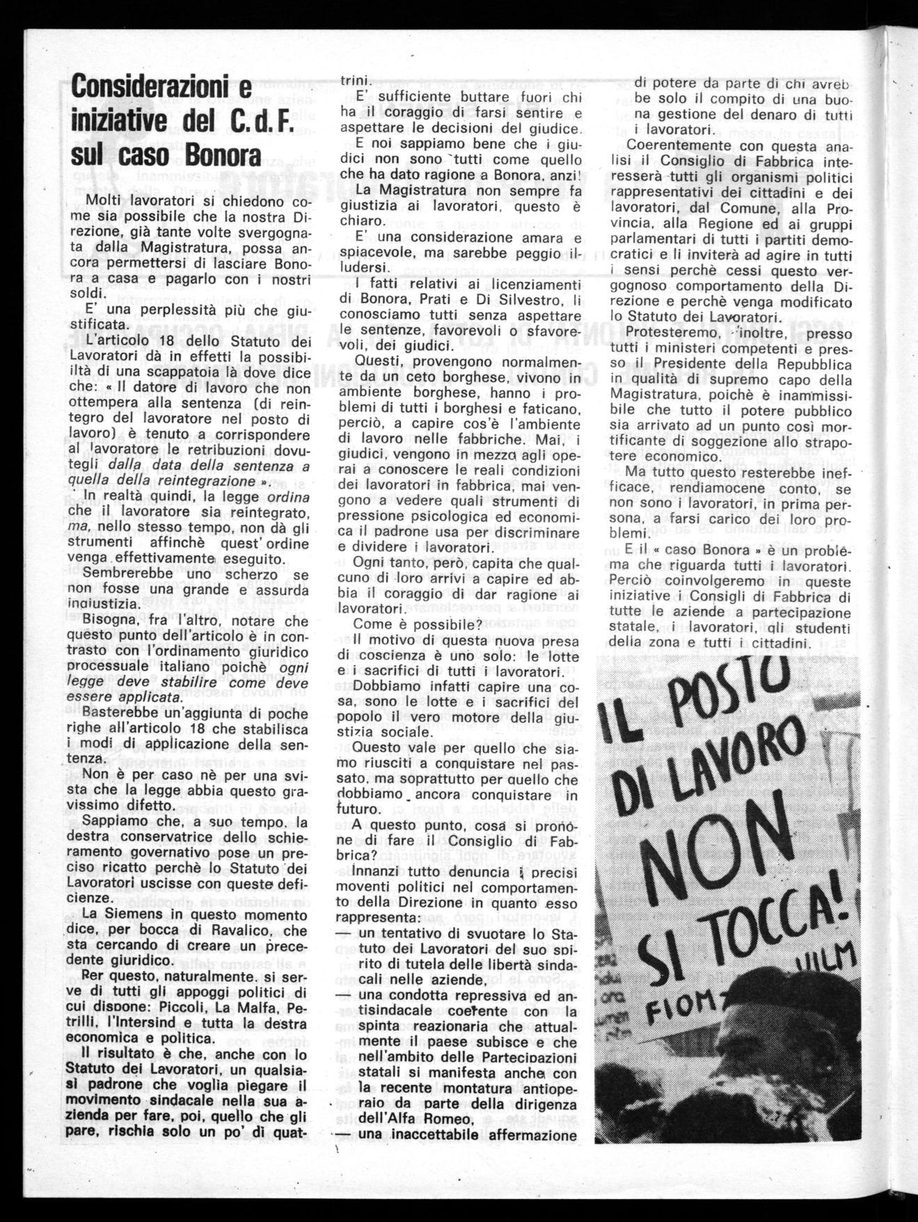 E il « caso Bonora » è un problema che riguarda tutti i lavoratori. Perciò coinvolgeremo in queste iniziative i Consigli di Fabbrica di tutte le aziende a partecipazione statale, i lavoratori, gli studenti delta zona e tutti i cittadini.