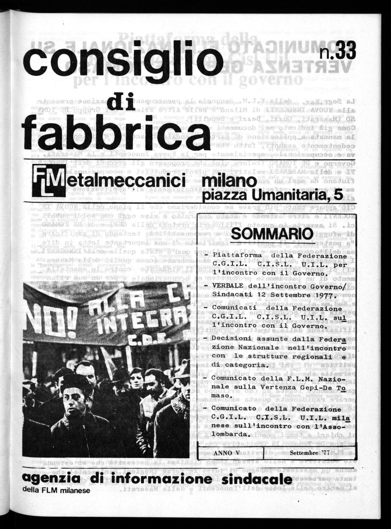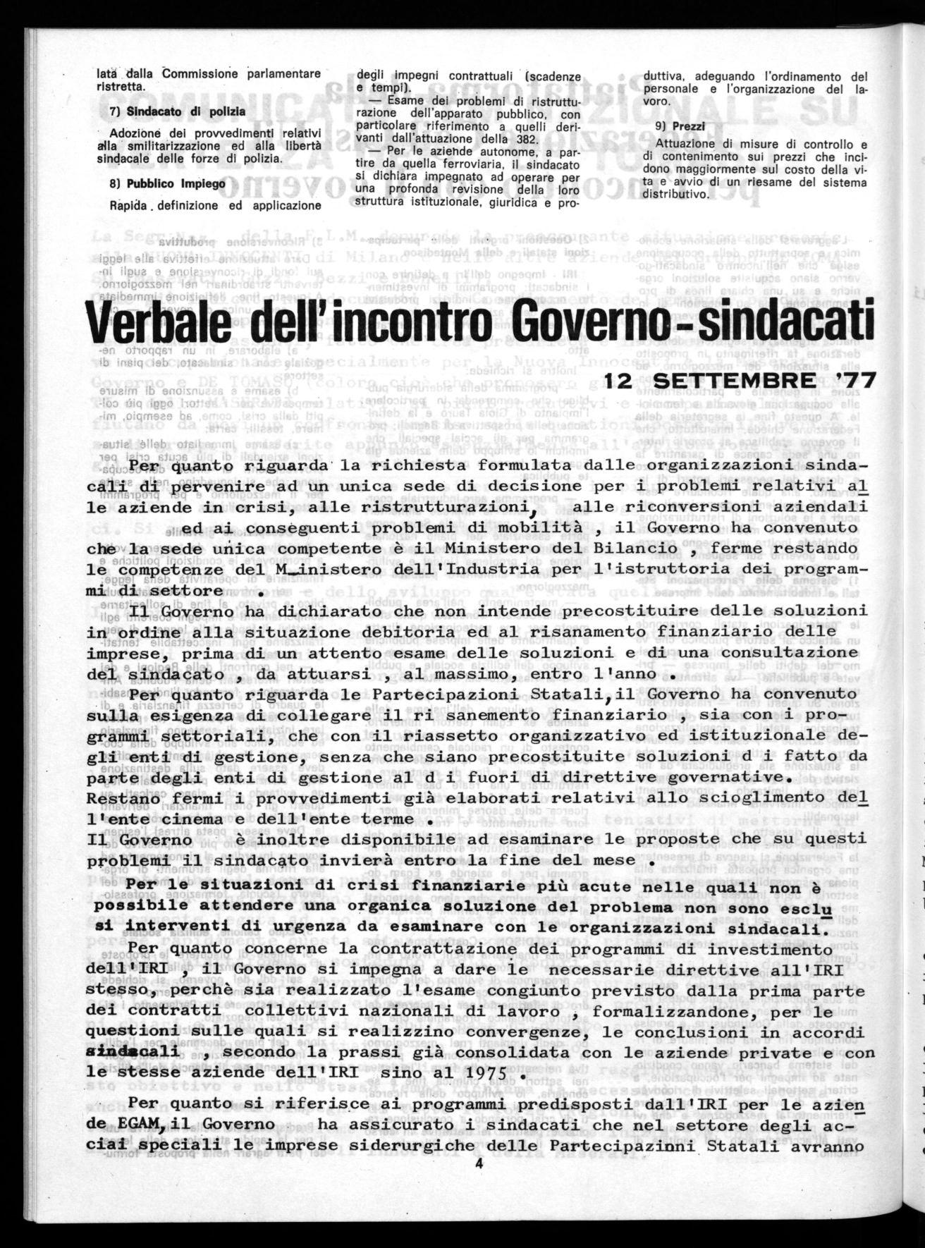 - VERBALE dell'incontro Governo/ Sindacati 12 Settembre 1977.