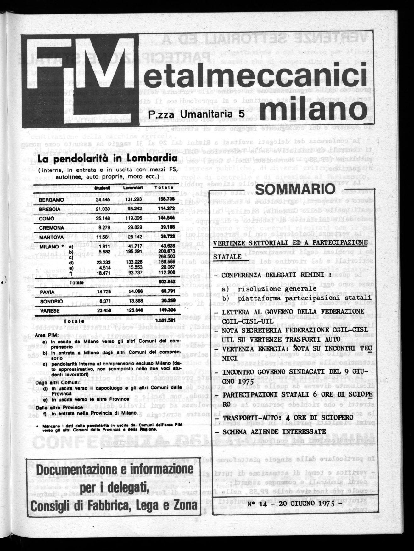 einformazione peri delegati, Consigli di Fabbrica, Lega e Zona.