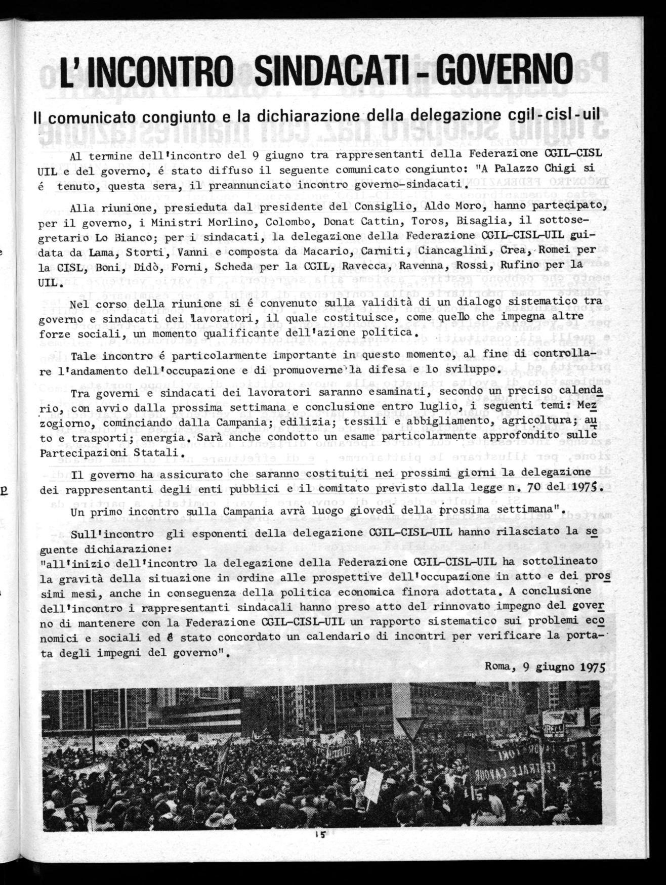 - INCONTRO GOVERNO SINDACATI DEL 9 GIUGNO 1975