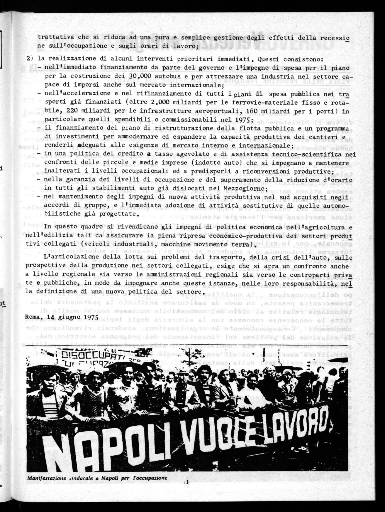 Sui problemi dello sviluppo e della difesa dell'occupazione, del Mezzogiorno e di una nuova politica economica, che debbono diventare sempre più una priorità assoluta, il movimento sindacale, nonostante vaste e generose iniziative di lotta a livello delle zone, provinciali, settoriali ed anche nazionali avverte la necessità di una unificazione intorno ad alcune scelte fondamentali, superando i limiti e le incertezze di direzione registrate in questi mesi.