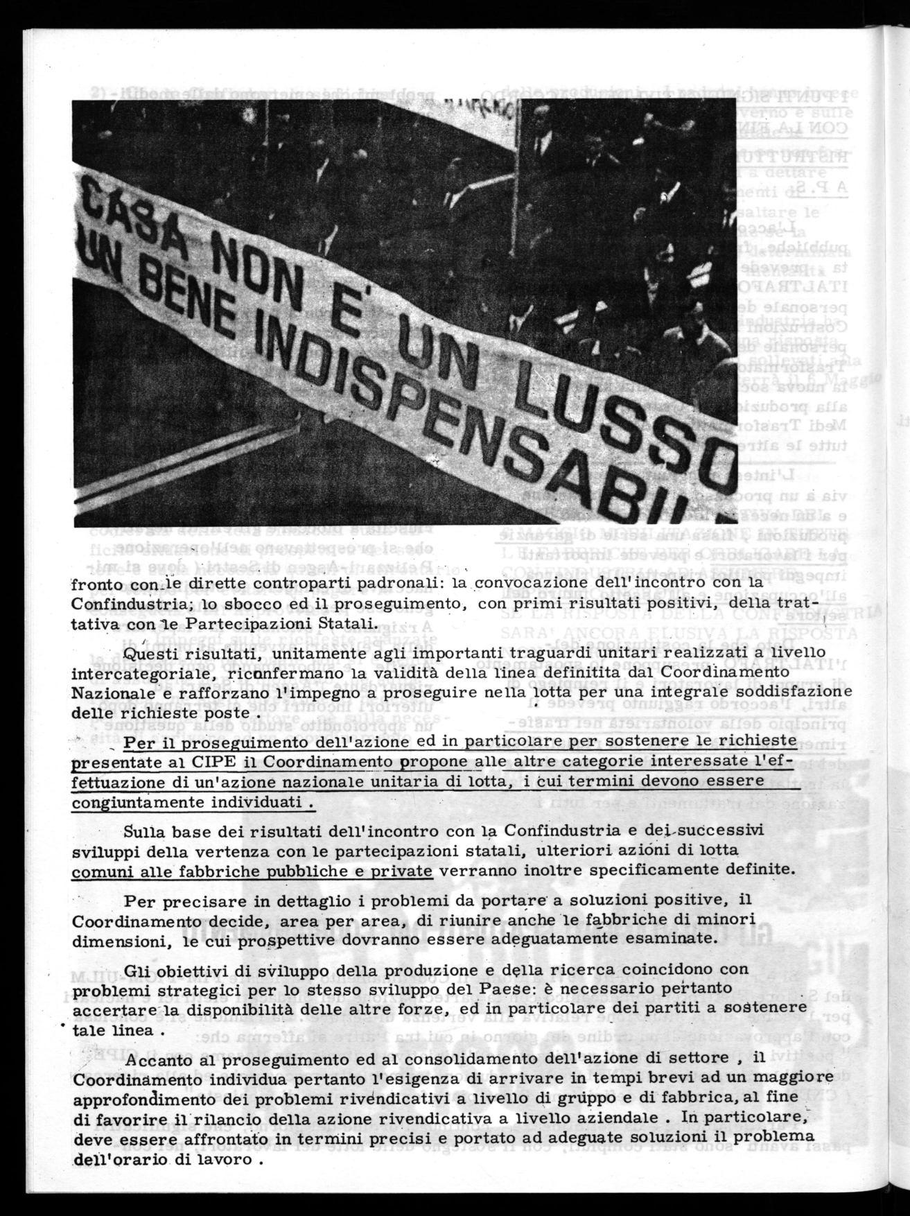 Sulla base dei risultati dell'incontro con la Confindustria e dei-successivi sviluppi della vertenza con le partecipazioni statali, ulteriori azióni di lotta comuni alle fabbriche pubbliche e private verranno inoltre specificamente definite.