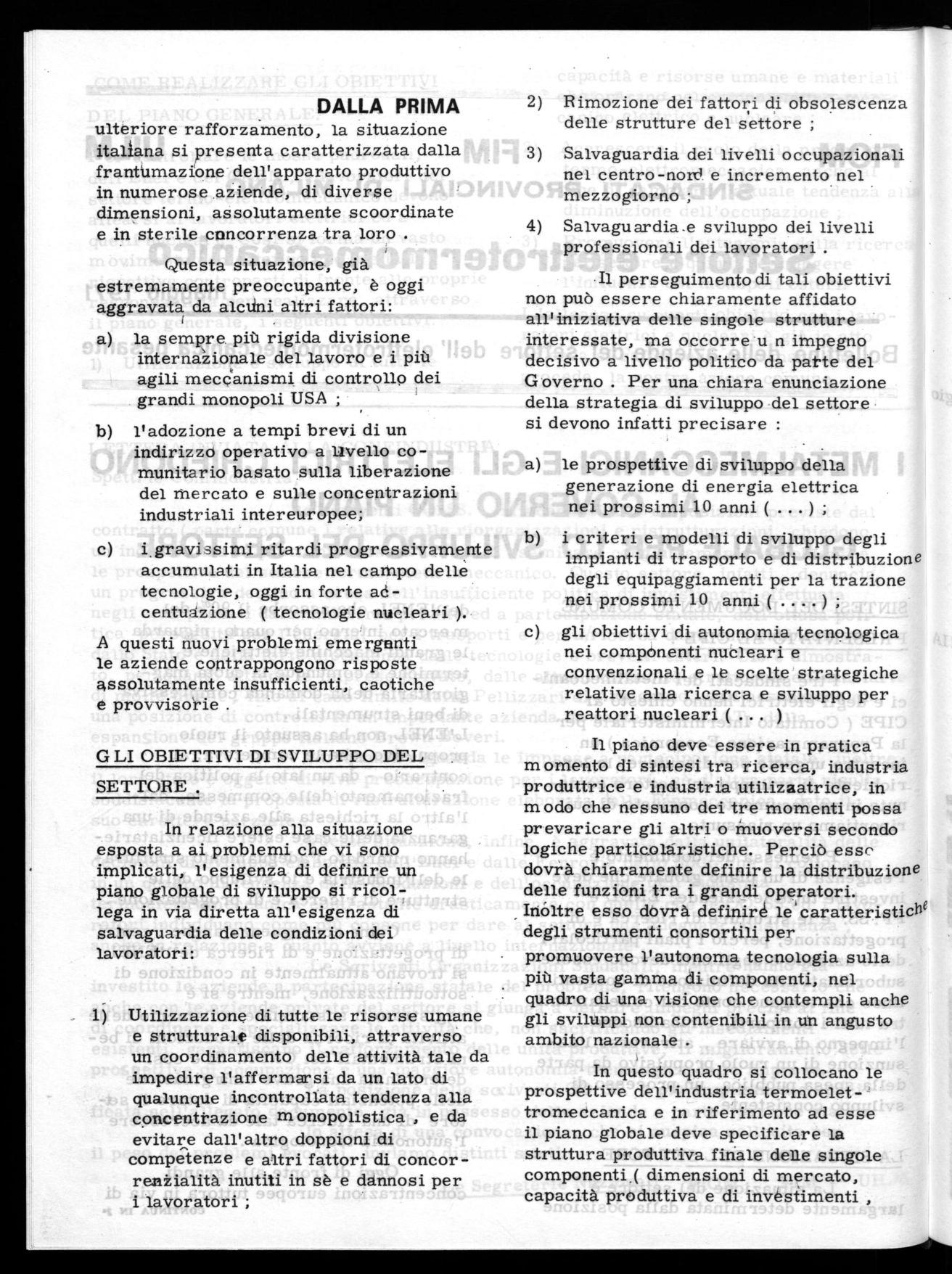 In questo quadro si collocano le prospettive dell'industria termoelettromeccanica e in riferimento ad esse il piano globale deve specificare la struttura produttiva finale delle singole componenti.( dimensioni di mercato, capacità produttiva e di investimenti ,