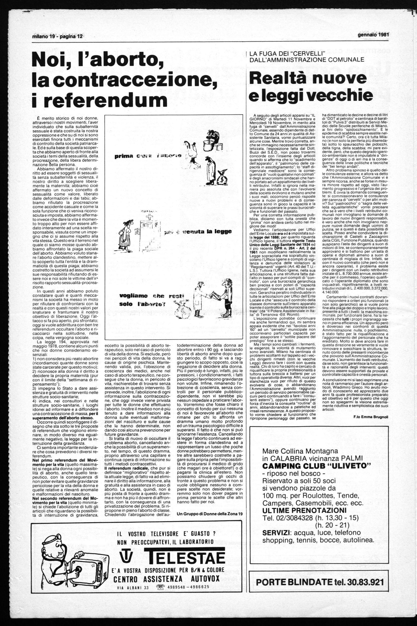 Verso la metà del mese di dicembre scorso é apparso nella nostra zona il primo numero di un periodico la cui testata ricorda, anche graficamente, quella del nostro giornale. Non sappiamo se la scelta di tale testata sia stata fatta dai redattori (tutti consiglieri di zona democristiani) nel nuovo periodico soltanto per mancanza di fantasia, piuttosto che nel tentativo di creare confusione tra i lettori o di sfruttare in qualche modo la popolarità raggiunta dal nostro mensile in cinque anni di presenza nella zona. Riteniamo comunque necessario fare chiarezza (ed altrettanto invitiamo a fare i redattori del nuovo periodico) precisando che la nostra testata, regolarmente registrata al Tribunale di Milano, é "milano 19" e nulla abbiamo a che fare con "milanozona 19", né con eventuali altri imitatori.