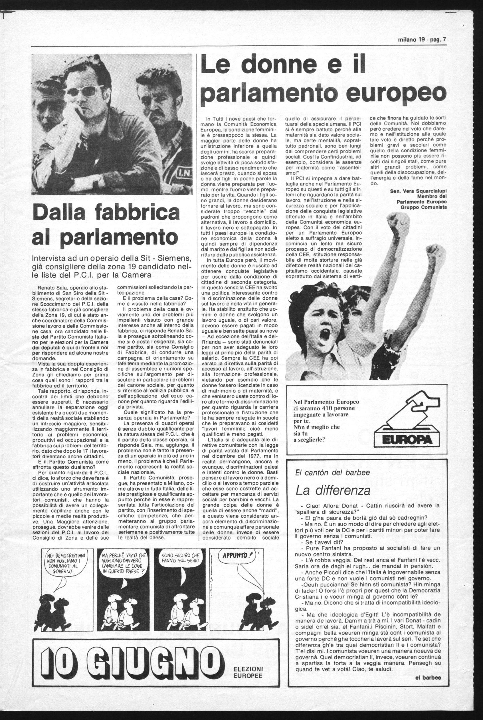 Tocca al giovane Antonelli: "Sì va bene, ma perchè il PCI non è decisamente contro l'energia nucleare, pericolosa, dannosa, nociva, costosa, perniciosa, schifosa, pallosa?" Il mio più giovane virgulto, sinora zitto e defilato, ha voglia di dire la sua: "Ma perchè non dite "no grazie" anche all'energia petrolifera che ci ammorba tutti come fa quella di Pero? Forse perchè la mettete dentro le moto per andare in giro a inquinare l'aria con puzza e rumore?" Devo riconoscere che siamo andati sul pesante. Meglio correre ai ripari e mi faccio avanti io. "Intanto solo la DC ha proposto un uso generalizzato dell'energia nucleare. Per il PCI l'utilizzo deve essere rigorosamente condizionato alla soluzione certa dei problemi di sicurezza e di reale controllo democratico dei processi che avvengono nelle centrali nucleari, questione diventata ancora più necessaria dopo il grave fatto avvenuto negli USA. Bisogna poi ricercare seriamente nuove fonti di energia (solare, geotermica, idroelettrica, carbone ecc.) in modo da sostituire l'uso del petrolio, in via di esaurimento, per il quale dipendiamo dall'estero ed effettuiamo lavorazioni pericolose e nocive proprio sul nostro territorio, anche per conto di altri Paesi, con forte inquinamento atmosferico e marino. Devo qui rilevare, però, e non solo per amore di polemica, che nessuno ha mai scatenato campagne di massa, addirittura internazionali, contro l'installazione di raffinerie nel nostro Paese". "Già, ve l'immaginate a cosa si sarebbe ridotto il Pannella se avesse digiunato per protesta contro ogni installazione di raffineria? Un chiodo da succhiare, alla Charlot": è l'aggiunta della mia moglie adorata che non ha aspettato la giornata odierna per comunicarmi di votare PCI, ma da quasi 25 anni indica anche le preferenze da votare anche a me".