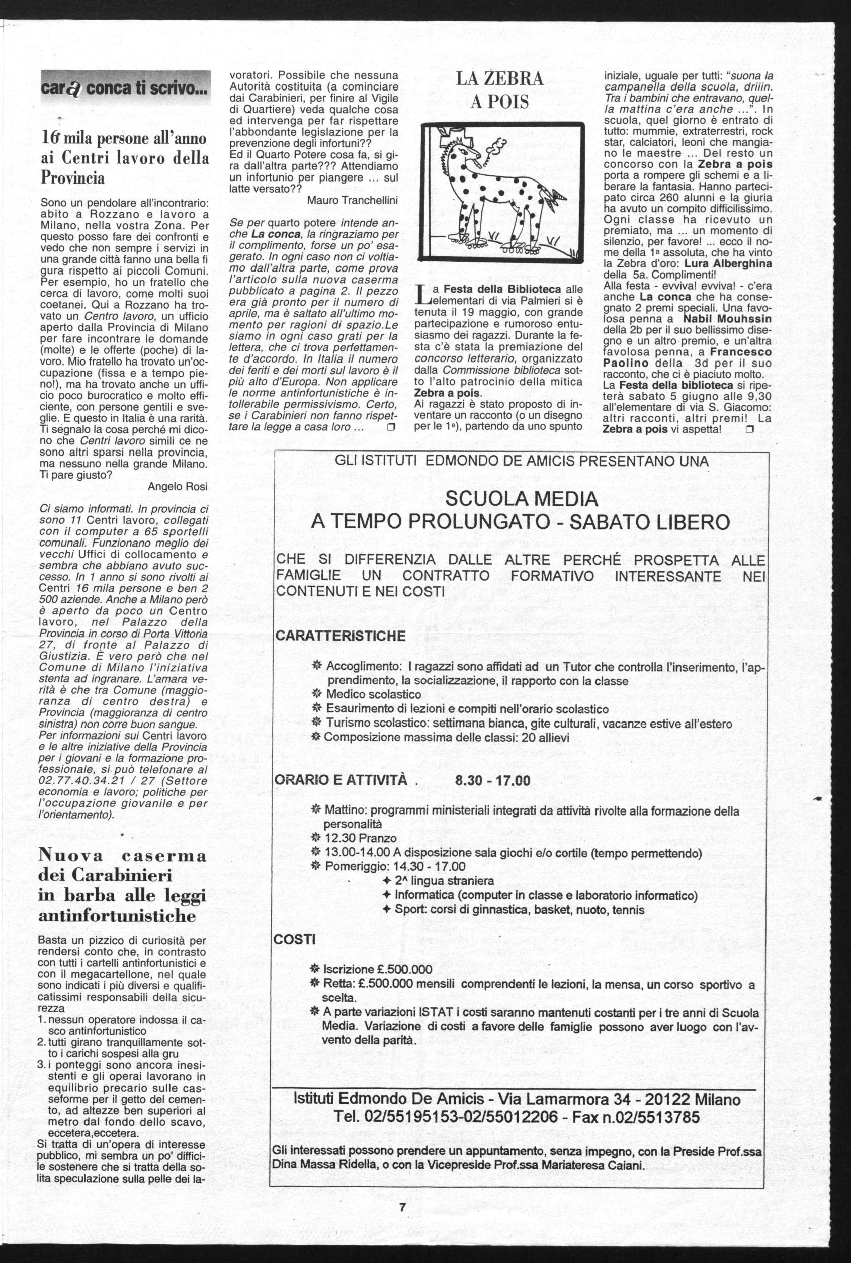 Infine ora sappiamo che la festa s'è chiusa alle 17,30. Per il resto ricordiamo alla signora Menin che ogni giornale raccoglie liberamente le informazioni e non può essere obbligato a rivolgersi al "Presidente" o a "un suo delegato". Questo distingue la stampa dei paesi liberi da quella dei paesi a informazione controllata. Del resto, proprio per tale ragione, i giornali sono responsabili di ciò che scrivono. Non ci è chiaro inoltre perché La conca non potrebbe parlare della signora Carla Ferrari, coordinatrice del CTS: sarebbe un'immunità veramente unica. A questo proposito facciamo notare, in particolare alla signora Mariuccia De Vecchi, che nella stessa pagina del pezzo preso di mira, in un articolo in neretto, abbiamo scritto che quello della signora Carla Ferrari "è un attivismo lodevole, che tuttavia si scontra con gli intralci burocratici del direttore del settore decentramento, Di Stefano e del capoufficio presso il Consiglio di Zona, signor Ossan!'. Un giudizio, insomma, non molto diverso dal suo. Evidentemente questo particolare l'è sfuggito. Poco male. È invece più grave che sia sfuggito (sia alla signora De Vecchi che alla signora Menin) il nostro discorso, ripetuto e insistito, contro l'atteggiamento di chiusura del Comune verso la partecipazione e l'autogestione dei Centri sociali da parte dei cittadini/utenti. Abbiamo criticato la proposta di nuovo regolamento dei Centri sociali avanzata da Del Debbio. Così com'è rischia, infatti, di esseáre micidiale per la gestione democratica. Abbiamo anche criticato la segue a pagina 3