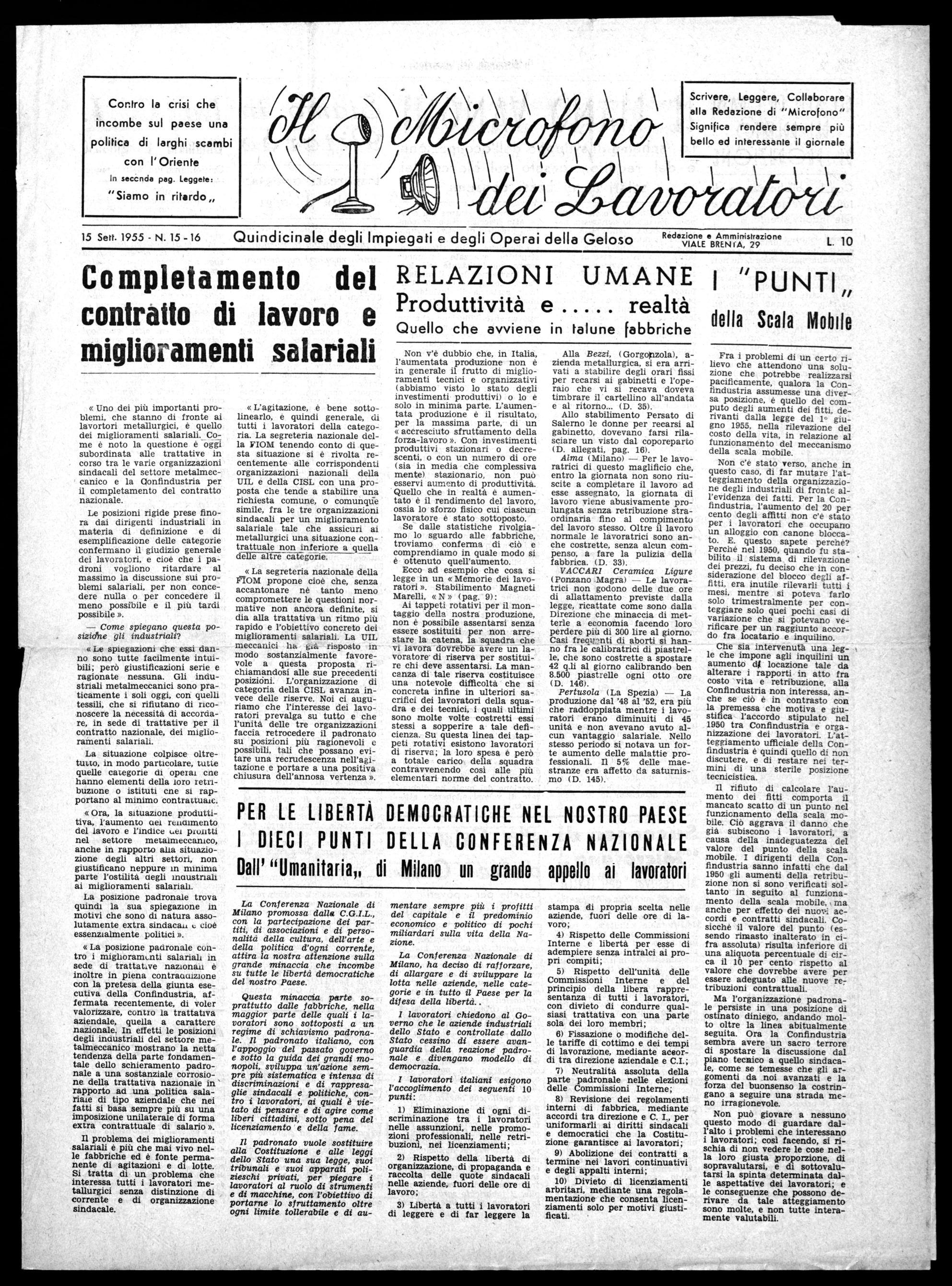 15 Sett. 1955 - N. 15 - 16 Quindicinale degli Impiegati e degli Operai della Geloso