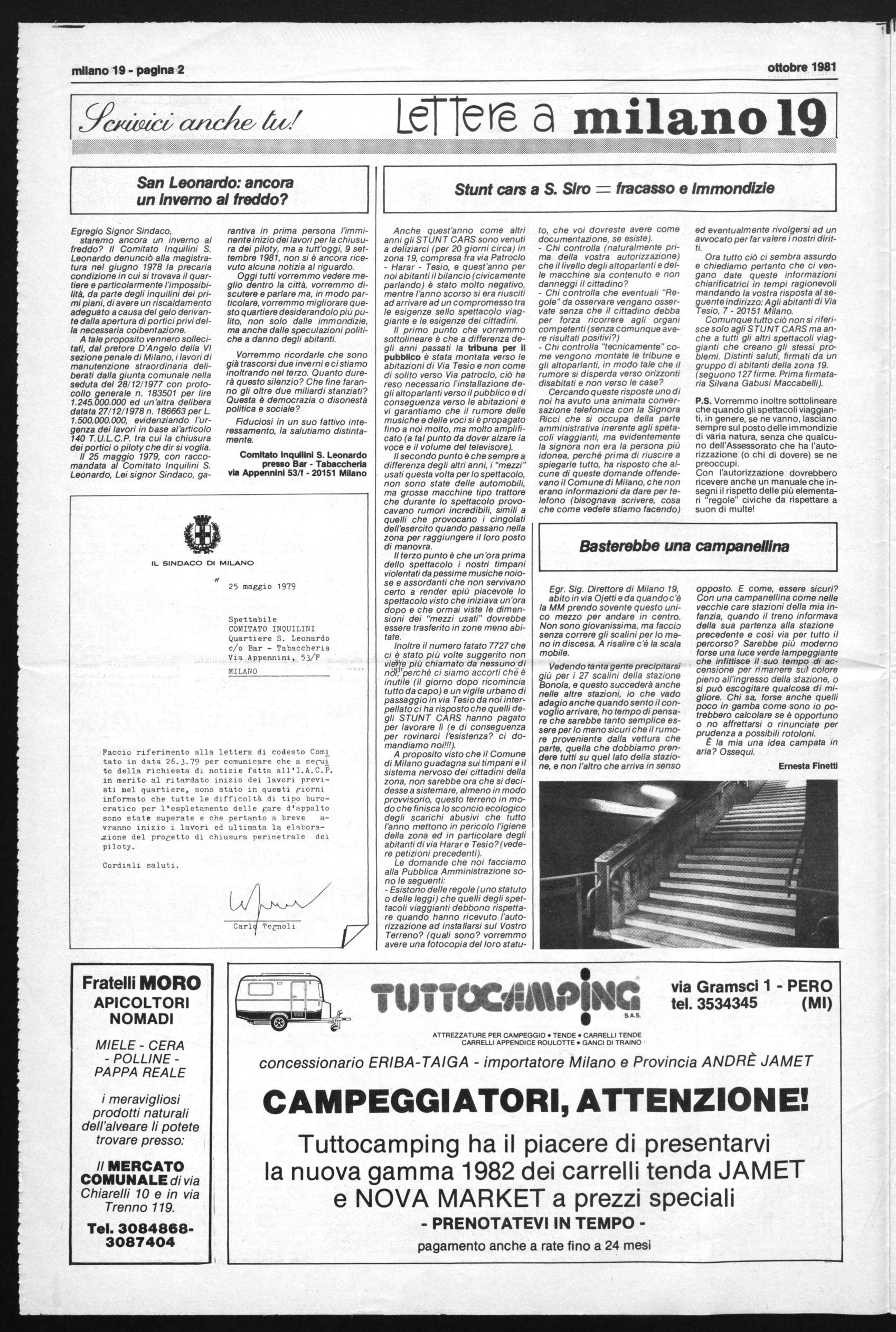 Comunque tutto ciò non si riferisce solo agli STUNT CARS ma anche a tutti gli altri spettacoli viaggianti che creano gli stessi problemi. Distinti saluti, firmati da un gruppo di abitanti della zona 19. (seguono 127 firme. Prima firmataria Silvana Gabusi Maccabelli).