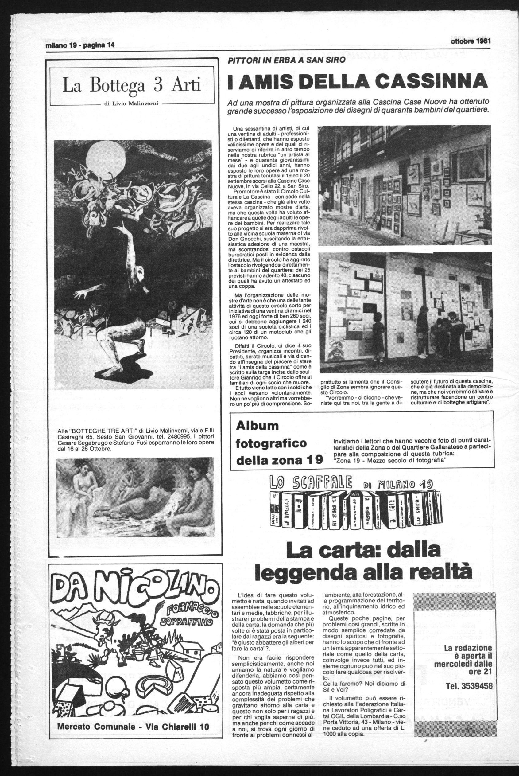 Ad una mostra di pittura organizzata alla Cascina Case Nuove ha ottenuto grande successo l'esposizione dei disegni di quaranta bambini del quartiere.