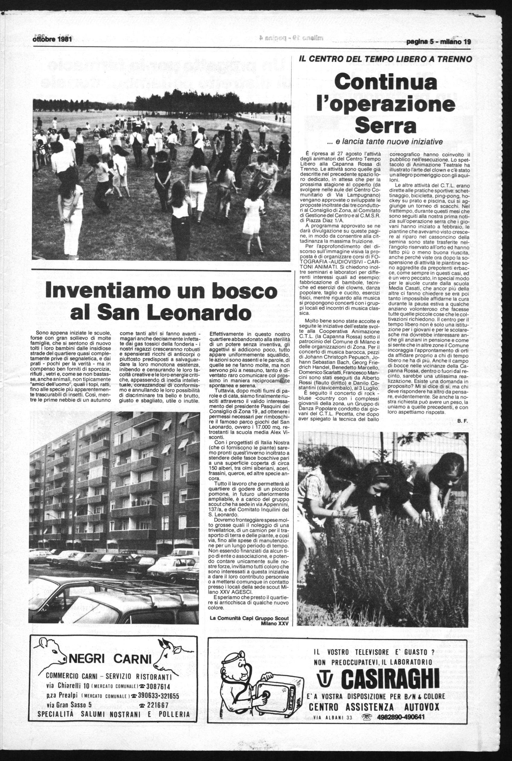 1980 il Consiglio di Zona 19 ha approvato un programma per il quinquennio '80-'85.