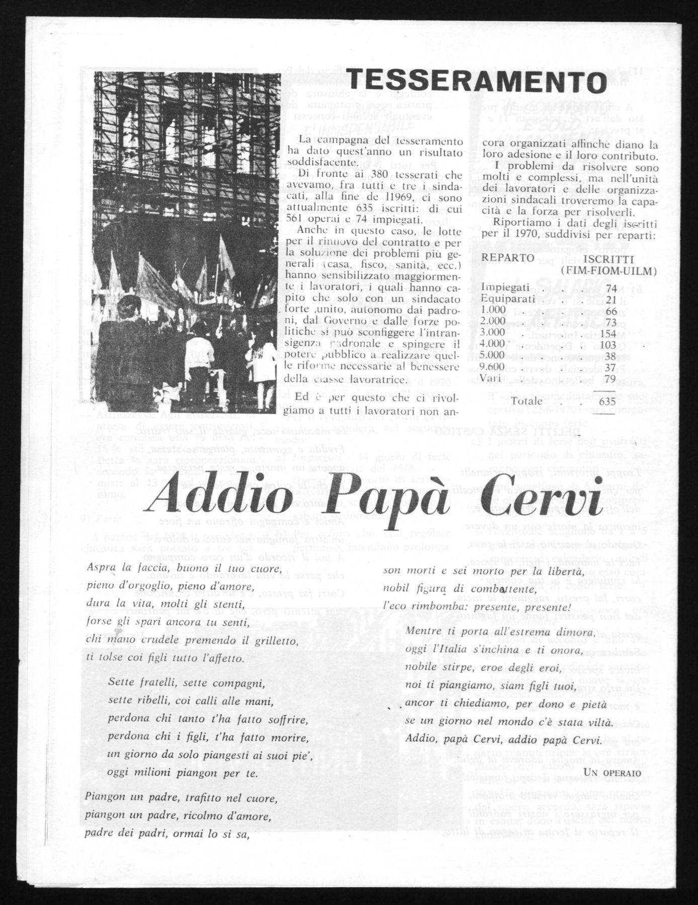 Di fronte ai 380 tesserati che avevamo, fra tutti e tre i sindacati, alla fine de 11969, ci sono attualmente 635 iscritti: di cui 561 operai e 74 impiegati.