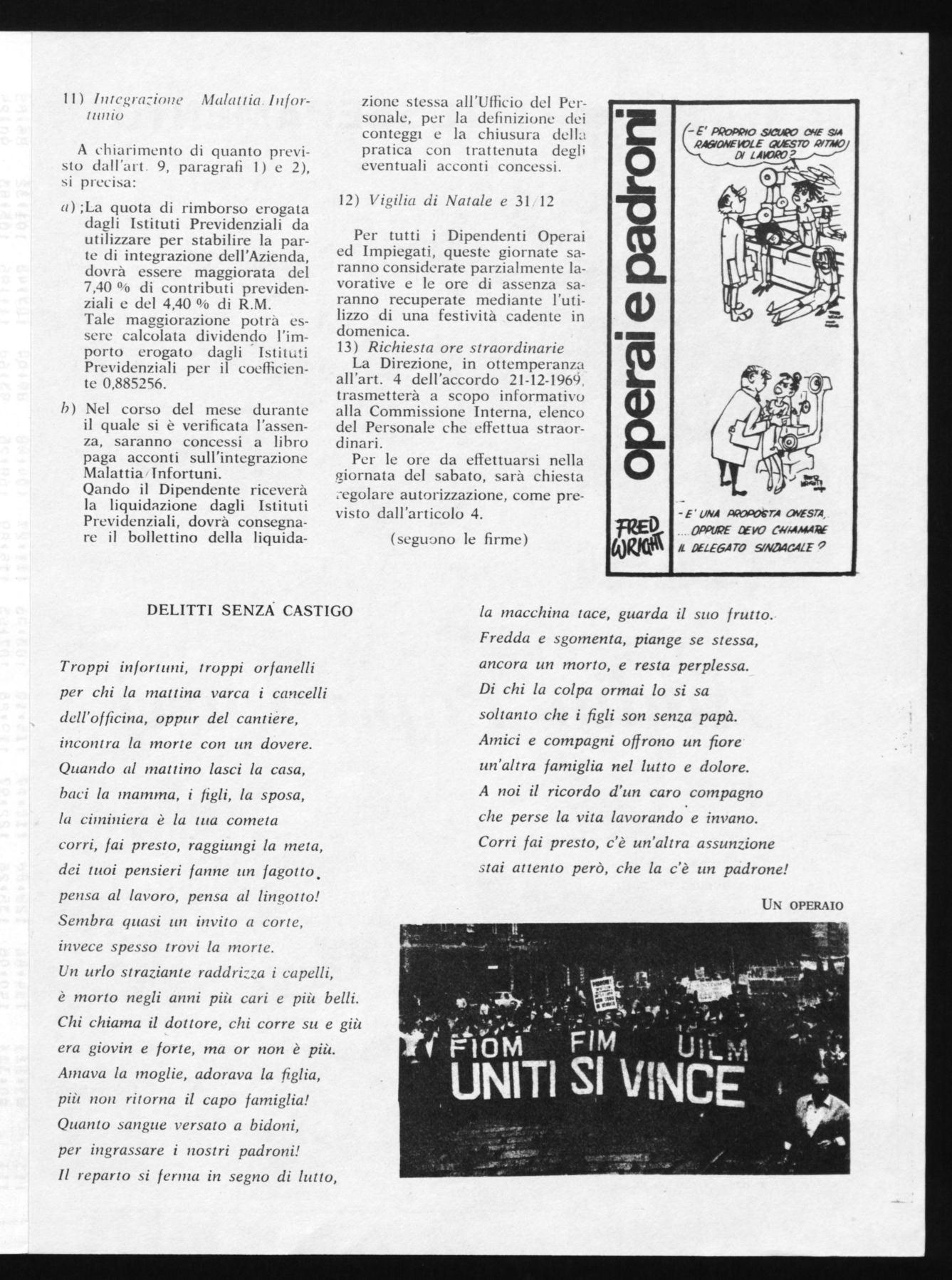 Ultimati i problemi su indicati, il Consiglio di fabbrica si incaricherà di recepire e di esprimere la volontà dei lavoratori rispetto a questo problema.