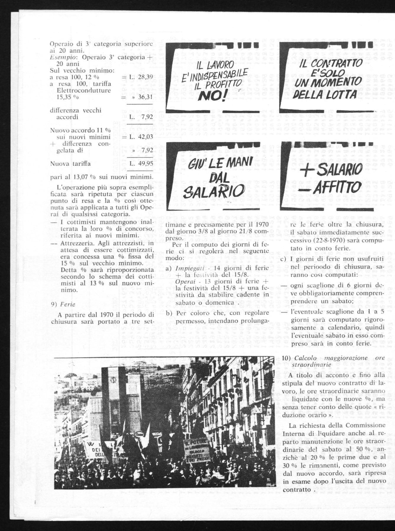 La richiesta della Commissione Interna di liquidare anche al reparto manutenzione le ore straordinarie del sabato al 50 %, anzichè al 20 % le prime due e al 30 % le rimanenti, come previsto dal nuovo accordo, sarà ripresa in esame dopo l'uscita del nuovo contratto .
