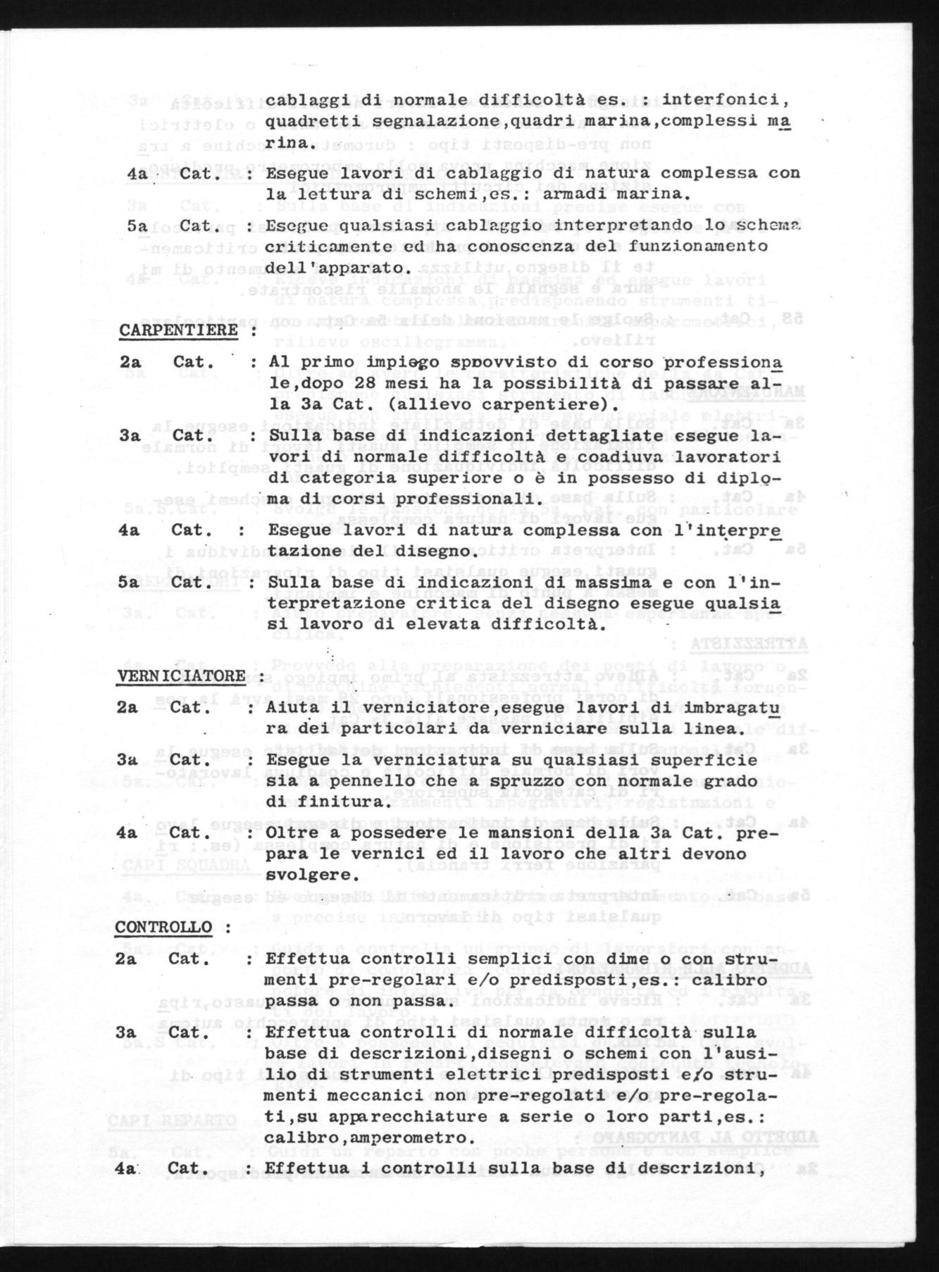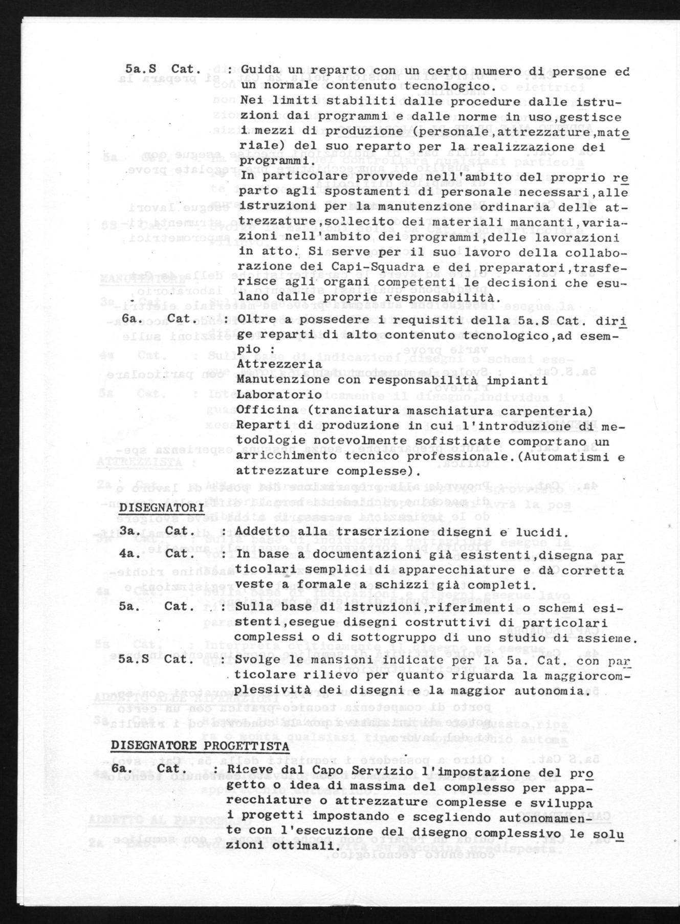 5a.S Cat. : Oltre a possedere i requisiti della 5a. Cat. svolge lavori in reparti con elevato contenuto tecnologico.