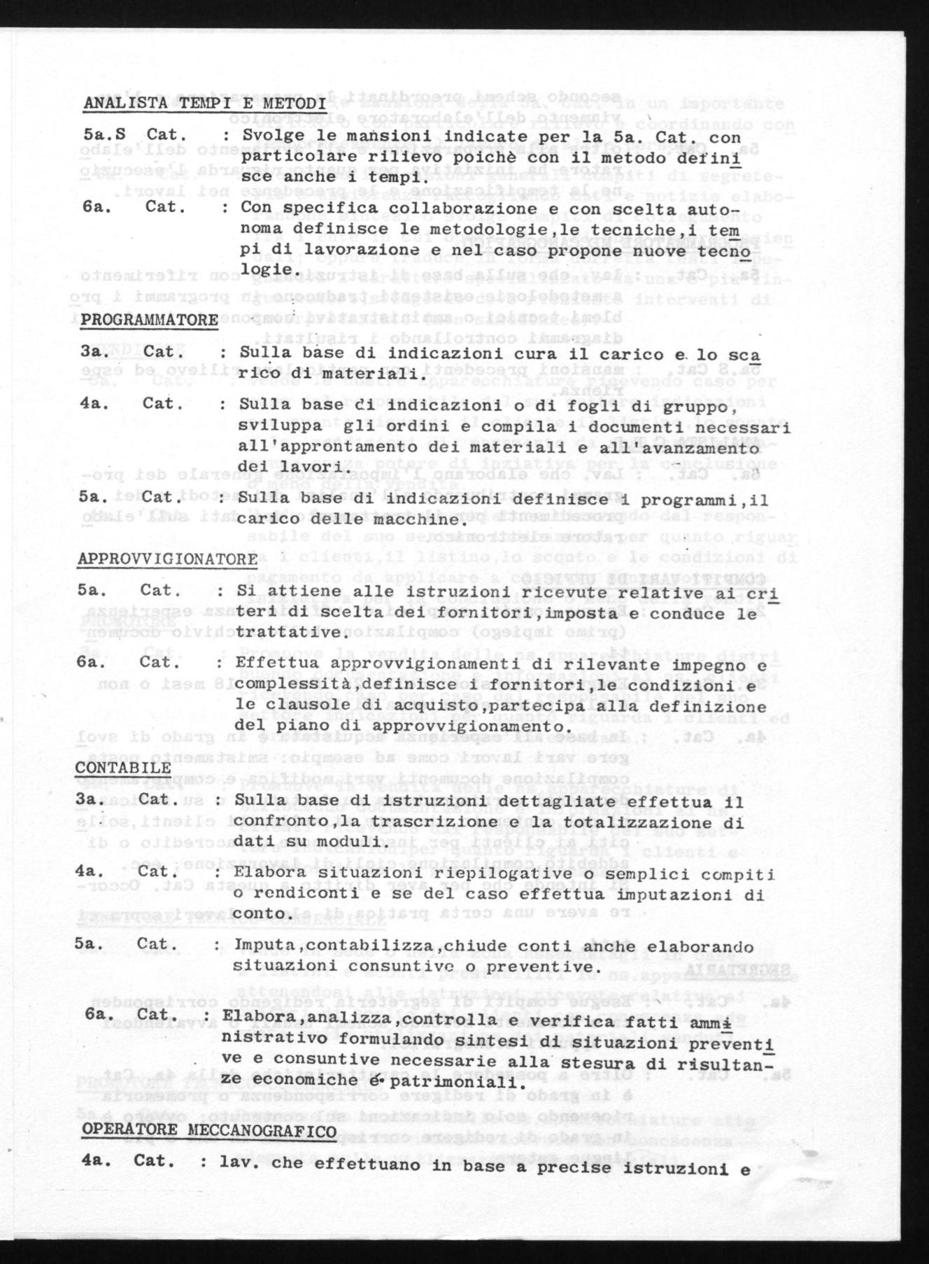 5a.S Cat. : Svolge le mansioni indicate per la 5a. Cat. con particolare rilievo poichè con il metodo definì sce anche i tempi.