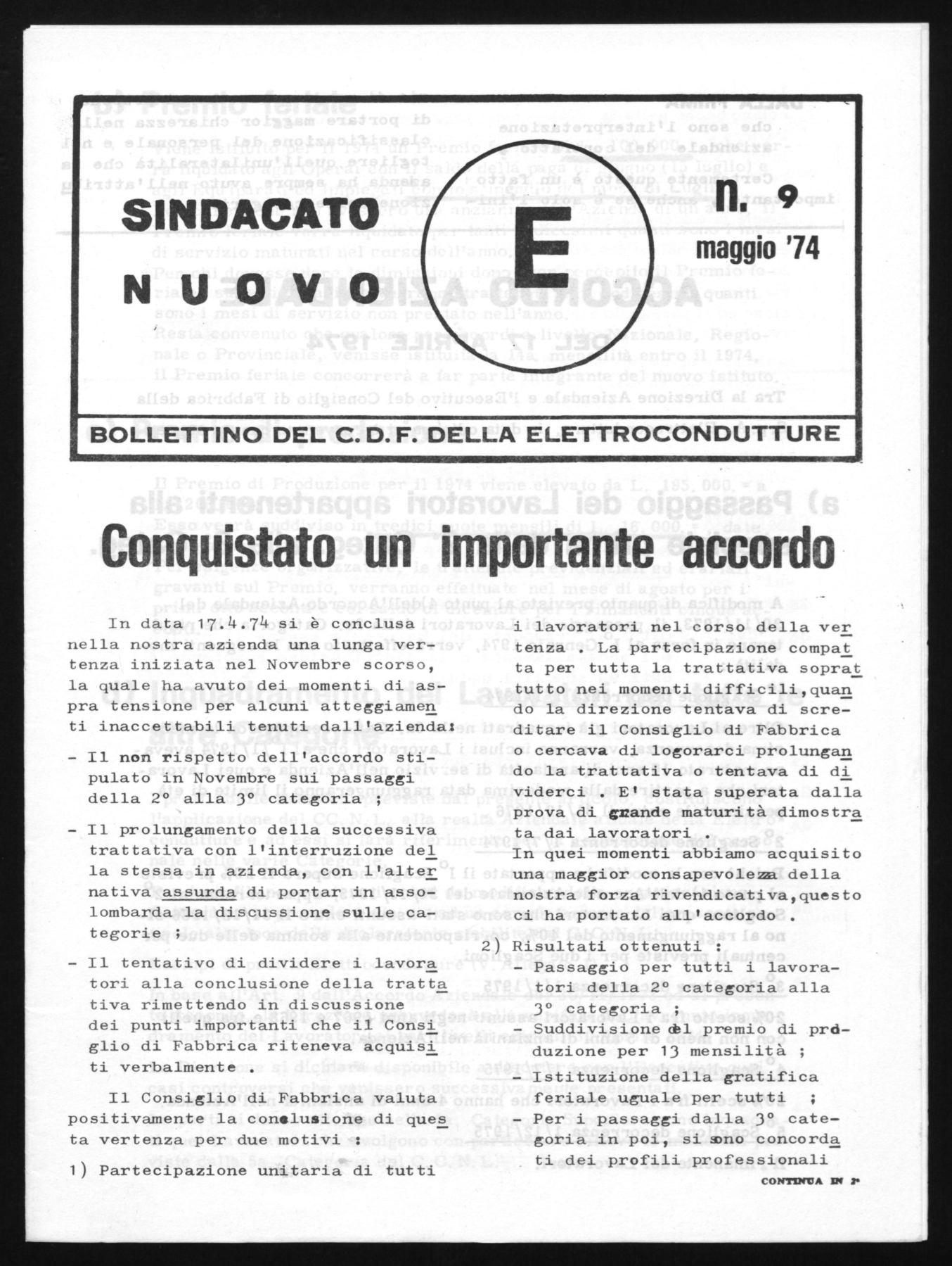 In data 17.4.74 si è conclusa nella nostra azienda una lunga vertenza iniziata nel Novembre scorso, la quale ha avuto dei momenti di aspra tensione per alcuni atteggiamen ti inaccettabili tenuti dall'azienda: