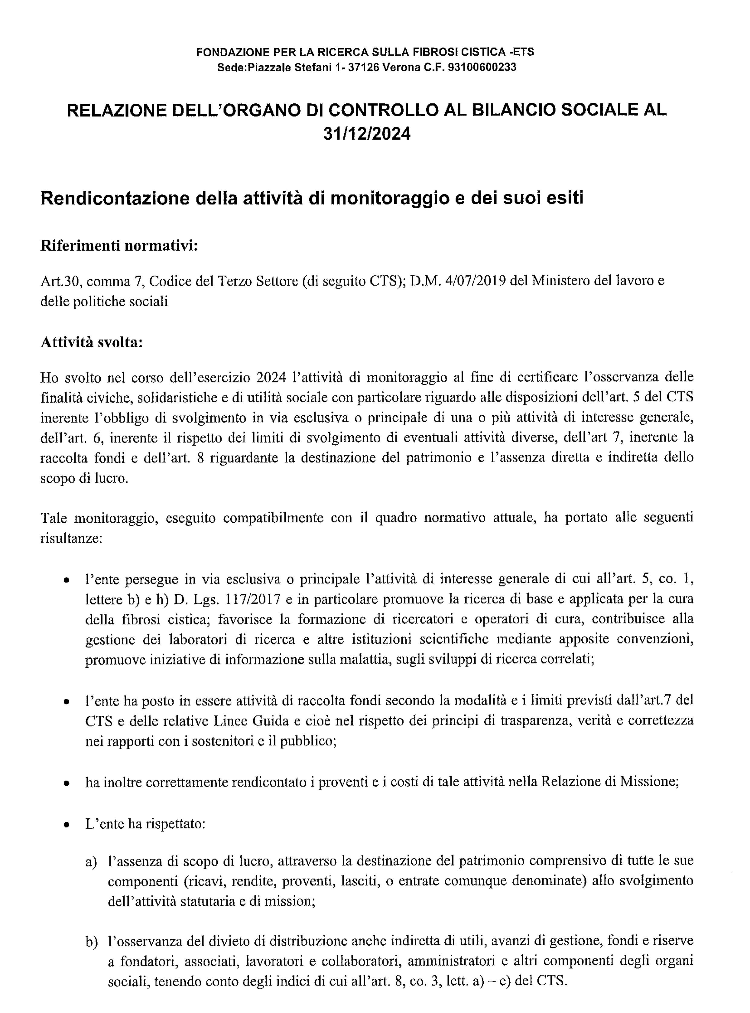 Bilancio sociale 2024 della Fondazione per la Ricerca sulla Fibrosi Cistica - ETS