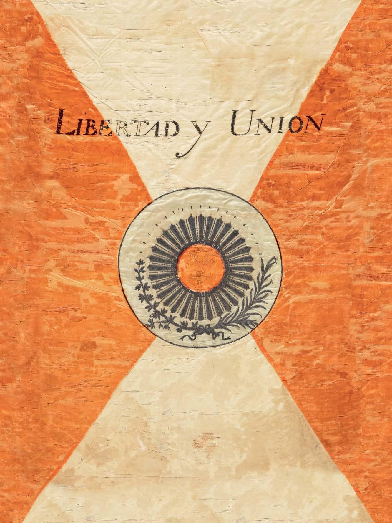 Página XIII: Bandera de raso con que se proclamó en Piura la independencia, 1820. Museo Nacional de Arqueología, Antropología e Historia del Perú, Lima.