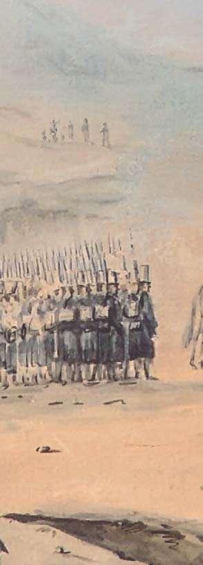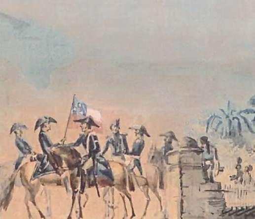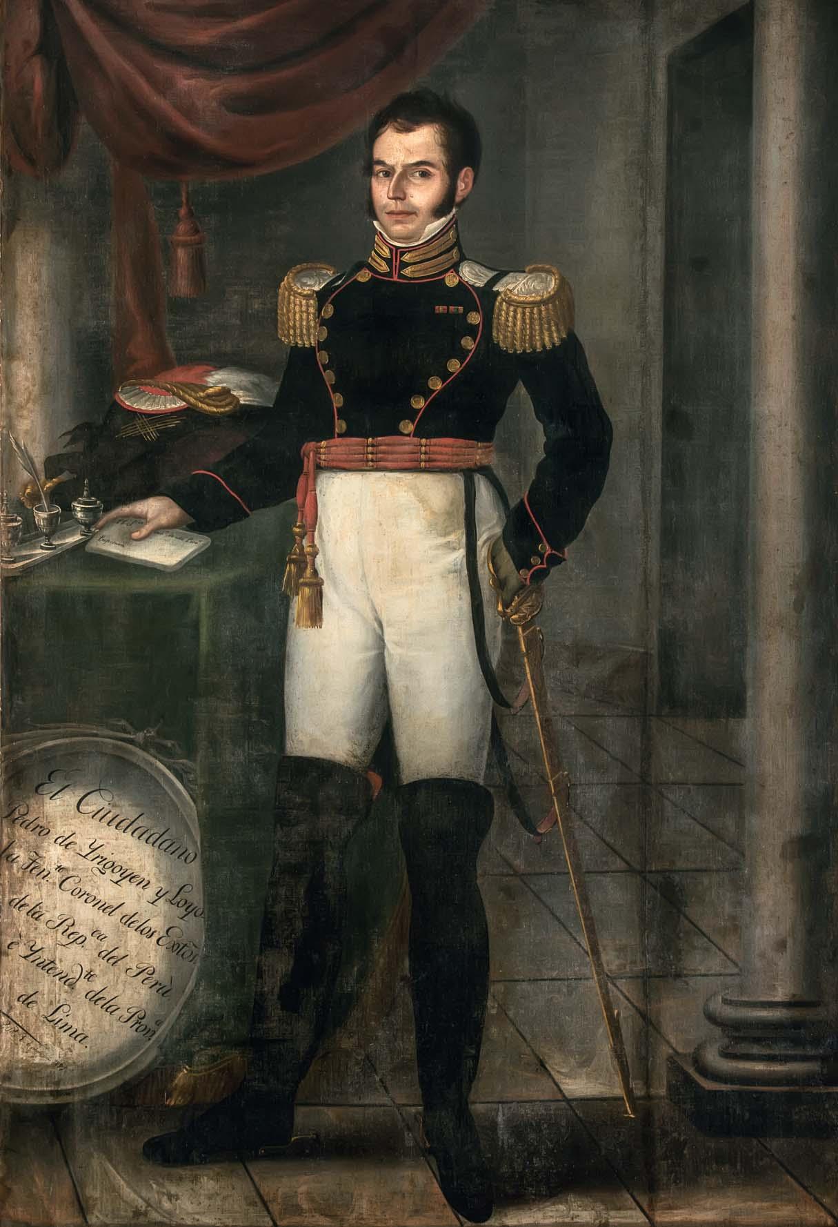 Bernardo O’Higgins. El batallón Numancia recibe la bandera del Ejército Libertador al momento de pasar el Puente de Huaura, circa 1823. Museo Nacional de Arqueología, Antropología e Historia del Perú.