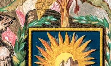 Detalle central, guirnalda cívica ofrecida por el pueblo del Cuzco al Libertador Simón Bolívar. Museo Nacional de Colombia, circa 1825.
