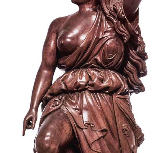 Página siguiente: Nicholas Young. América o Genio del Progreso, 1872. Madera tallada, 300 x 100 cm. Pinacoteca Municipal Ignacio Merino, Municipalidad Metropolitana de Lima, en custodia en el Museo de Arte de Lima.