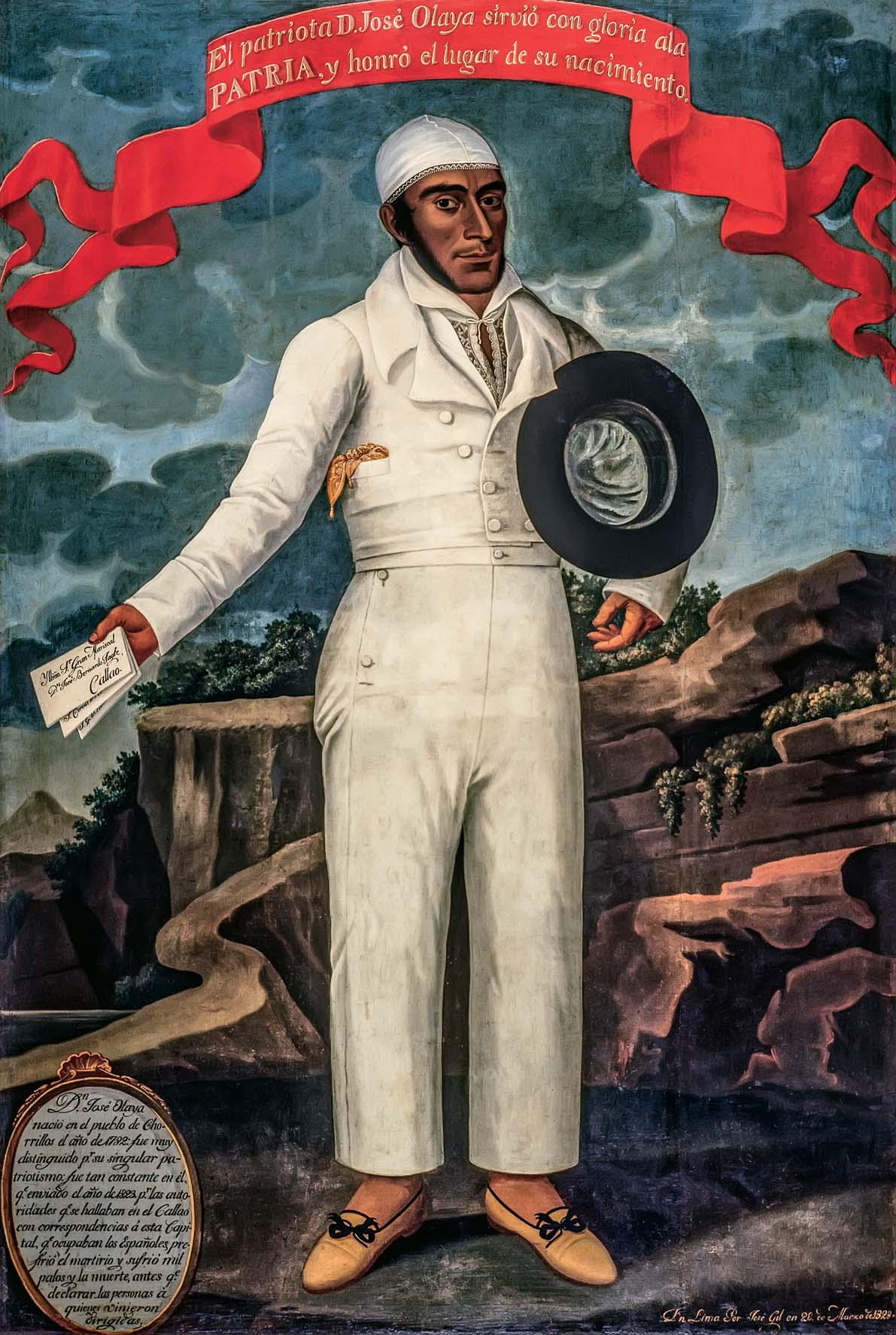Página XVIII: José Gil de Castro (DETALLE). Retrato de José Olaya. El Patriota D. José Olaya sirvió con gloria a la PATRIA y honró el lugar de su nacimiento. Lima, 20 de marzo de 1828. Museo Nacional de Arqueología, Antropología e Historia del Perú. Ministerio de Cultura del Perú, Lima.